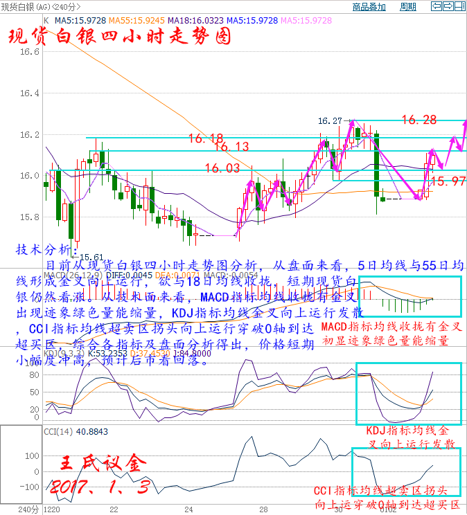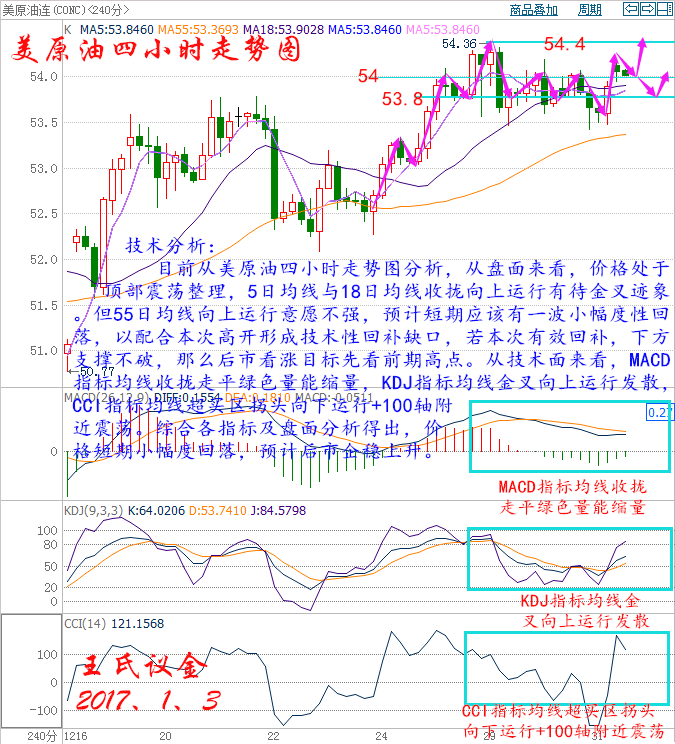 王氏議金:1、3 減產協議正式生效,美元承壓重挫有意配合 老王操作理念: 技術高位時追漲,短線盈利的很容易被大幅虧損吞回,風險大于收益,很難賺到錢。同樣,技術低位進場的,短線被套的很容易被快速拉升挽回,機會大于風險,很難套住人。因此,技術低位要敢于做多,才能不踏空;技術高位,要敢于做空,才能不高位站崗。以后老王會每天整理出當天交易行情中漲停個股的分析,給大家一些選股思路! 國際基本消息面: 美國WTI原油2月期貨周五(12月30日)收跌0.05美元,或0.09%,報53.72美元/桶,2016年全年勁升45%,為2009年以來最大年度漲幅。布倫特原油3月期貨周五收跌0.03美元,或0.05%,報56.82美元/桶,2016年全年暴漲52%,也為2009年以來最大年度漲幅。今日美元承壓重挫為油價提供了有效支撐,不過美國石油活躍鉆井數的再度增加令市場對美國頁巖油產量回升的擔憂繼續升溫。美國WTI原油期貨價格盤中最低觸及53.41美元/桶,布倫特原油期貨價格盤中最低觸及56.47美元/桶。 基本面利多因素: 2016年最后一個交易日,美元在毫無征兆的情況下的閃崩令投資者大跌眼鏡。市場上并無基本面消息,答案是跟英鎊崩跌來自同一催化劑:歐元/美元止損位失守之后,算法交易涌向交易的同一側,導致市場上主要貨幣對在猝不及防的情形下飆升。實際上,正如彭博報道稱,部分交易員表示歐元/美元跳漲部分上是受該貨幣對升至1.0500上方之后算法交易買單涌現所驅動。美元下挫令油價獲得了有效支撐。 美國能源信息署(EIA)最新數據顯示,截至12月23日當周,美國精煉油庫存減少188.1萬桶,市場預估為增加183.3萬桶,連續兩周錄得下滑。美國汽油庫存減少159.3萬桶,市場預估為增加150萬桶,為7周以來最大降幅。上周美國原油進口減少34.7萬桶,至816.7萬桶/日。此外,上周美國國內原油產量減少2萬桶至876.6萬桶/日,連續第38周維持在900萬桶/日關口下方。 阿曼今日也告知部分客戶,計劃在明年3月將分配銷售額削減5%,不過并未表明供應量是否將在之后持續縮減。伊拉克石油部長盧艾比(Jabar Ali al-Luaibi)近期表示,鑒于過去兩年內該國原油產量的快速回升,愿意在1月1日起減產20-21萬桶/日。目前多個OPEC成員國已經著手安排減產行動,委內瑞拉表示,該國原油產量計劃在2017年1月開始削減9.5萬桶/日。阿聯酋最大酋長國阿布扎比國營石油公司也向消費者發布通知稱,計劃將Murban和Upper Zakum油田的原油供應量削減5%,同時將Das原油出口終端出口量削減3%。科威特和卡塔爾石油公司已經告知消費者將削減1月份的原油供應量。OPEC于11月30日達成了2008年以來的首個減產協議,其中沙特承擔了較大部分的減產指標,計劃將該組織產量從2017年1月開始削減120萬桶/日,重回2016年1月水平。 最新消息顯示,OPEC和非OPEC減產監督委員會計劃于1月21-22日在維也納舉行會議,共同商定如何切實落實減產計劃,這也為油價提供了進一步支撐。 現貨原油技術分析及操作建議———— 技術分析: 目前從美原油四小時走勢圖分析,從盤面來看,價格處于頂部震蕩整理,5日均線與18日均線收攏向上運行有待金叉跡象。但55日均線向上運行意愿不強,預計短期應該有一波小幅度性回落,以配合本次高開形成技術性回補缺口,若本次有效回補,下方支撐不破,那么后市看漲目標先看前期高點。從技術面來看,MACD指標均線收攏走平綠色量能縮量,KDJ指標均線金叉向上運行發散,CCI指標均線超買區拐頭向下運行+100軸附近震蕩。綜合各指標及盤面分析得出,價格短期小幅度回落,預計后市企穩上升。 美原油操作建議: 今日美原油整體操作趨勢以逢低做多為主,以高空為輔。 日內阻力:54.4/55 日內支撐:53.6/53 激進者空單54~54.5區間內可以考慮嘗試做空,止損54.9美元上方,目標54/53.6美元。 穩健者空單55~54.9區間內可以考慮嘗試做空,止損55.3美元上方,目標54.4/54美元。 激進者多單54~53.9區間內可以考慮嘗試做多,止損53.6美元下方,目標54.4/55美元。 穩健者多單53.4~53.5區間內可以考慮嘗試做多,止損53美元下方,目標53.8/54.4美元。 以上操作建議僅供參考、投資有風險、操作需謹慎。 【以上建議出自高德金融研究院,以內部客戶操作建議為準】 現貨白銀技術分析及操作建議———— 技術分析: 目前從現貨白銀四小時走勢圖分析,從盤面來看,5日均線與55日均線形成金叉向上運行,欲與18日均線收攏,短期現貨白銀仍然看漲。從技術面來看,MACD指標均線收攏有金叉出現跡象綠色量能縮量,KDJ指標均線金叉向上運行發散,CCI指標均線超賣區拐頭向上運行穿破0軸到達超買區,綜合各指標及盤面分析得出,價格短期小幅度沖高,預計后市看回落。 現貨白銀操作建議: 今日現貨白銀整體操作趨勢以逢低做多為主,以高空為輔。 日內阻力:16.15/16.3 日內支撐:15.85/15.6 激進者空單建議16.01~16.05區間內可以考慮嘗試做空,止損16.19美元附近,目標15.87/15.73美元。 穩健者空單建議16.19~16.15區間內可以考慮嘗試做空,止損16.33美元附近,目標15.96/15.73美元。 激進者多單建議15.91~15.57區間內可以考慮嘗試做多,止損15.73美元附近,目標16.05/16.19美元。 穩健者多單建議15.73~15.78區間內可以考慮嘗試做多,止損15.59美元附近,目標15.96/16.1美元。 以上操作建議僅供參考、投資有風險、操作需謹慎。 【以上建議出自高德金融研究院,以內部客戶操作建議為準】 縱觀國際熱潮,論中國經濟,在眾多國家對比之下,顯然要優越得多,最后送