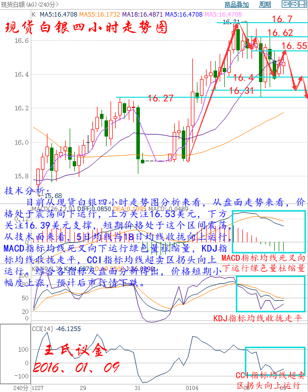 現(xiàn)貨白銀技術分析及操作建議———— 技術分析: 目前從現(xiàn)貨白銀四小時走勢圖分析來看,從盤面走勢來看,價格處于震蕩向下運行,上方關注16.53美元,下方關注16.39美元支撐,短期價格處于這個區(qū)間震蕩,從技術面來看,5日均線與18日均線收攏向上運行,MACD指標均線死叉向下運行綠色量柱縮量,KDJ指標均線收攏走平,CCI指標均線超賣區(qū)拐頭向上運行。綜合各指標及盤面分析得出,價格短期小幅度上漲,預計后市行情下跌。 現(xiàn)貨白銀操作建議: 今日現(xiàn)貨白銀整體操作趨勢以逢低做多為主,以高空為輔。 日內阻力:16.64/16.78 日內支撐:16.22/16.08 建議激進者空單16.5-16.46區(qū)間內可以考慮做空,止損16.64美元上方,目標16.22/16.09美元。 建議穩(wěn)健者空單16.64-16.69區(qū)間內可以考慮做空,止損16.83美元上方,目標16.5/16.36美元。 建議激進者多單16.36-16.4區(qū)間內可以考慮做多,止損16.22美元下方,目標16.5/16.64美元。 建議穩(wěn)健者多單16.22-16.18區(qū)間內可以考慮做多,止損16.03美元下方,目標16.36/16.64美元。 以上操作建議僅供參考、投資有風險、操作需謹慎。 【以上建議出自高德金融研究院,以內部客戶操作建議為準】 縱觀國際熱潮,論中國經濟,在眾多國家對比之下,顯然要優(yōu)越得多,最后送給當下的中國經濟投資者們一段話,未來的投資是一種趨勢,而天然氣就是一個不錯的投資產品,波動快、利潤大,近期把握情況整體趨于上升階段,投資好比上戰(zhàn)場一定要拿好槍帶好子彈,才能生存下去。 本人一直認為一單的盈利就像一種食物,比如包子,只能食一頓甚至不叫一頓,后面仍會饑餓。一個長期的規(guī)劃,就像一個制作包子的機器,可以長久的讓你處于飽足狀態(tài)。要一包子還是要制造包子機器,就看你怎么選擇!你贏,我陪你君臨天下,看一場盛世繁華;你輸,我陪你左右,伴你東山再起!你有敢進來的魄力,我就有讓你賺錢的實力,沒有華麗的語言,一切拿數(shù)據(jù)說話,實力打造精典,成功絕非偶然!(文/王氏議金 V信公眾號:wkj018) 免責聲明 本文章中的觀盤評級和操作建議僅供投資者參考和借鑒,筆者與相關金融商品的漲跌也不存在任何利益關系,據(jù)此入市給投資者帶來的盈利和虧損與公司及分析師無關。 本產品屬于高風險、高收益投資品種;投資者應具有較高的風險識別能力、資金實力與風險承受能力。投資者應合理配置資產、不應用全部資金做投資,不應借錢來做投資。 |