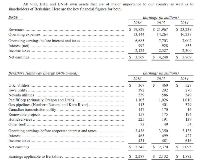 第四部分 受監管的,資本密集型業務 51、我們的BNSF鐵路跟伯克希爾能源(BHE),我們90%控股的公用事業業務單元,擁有特別重要的特性,使得他們跟伯克希爾其他的業務有較大區別。所以,在這封信中,我們把他們單獨列出來。去年,他們兩家占了伯克希爾33%的稅后營業利潤。 52、兩家公司的一個關鍵的特點是他們都是投資體量大,生命周期很長,且受監管的資產,并且有大量長期負債。伯克希爾沒有為這些負債提供擔保。每家公司的盈利能力都很強,即使是在經濟條件很差的情況下,他們也能賺取超過利息的費用。比如去年,對于鐵路行業來講是不好的,但BNSF的利息保障倍數是6:1. 53、對于BHE而言,兩個因素能夠確保公司在任何情況下負擔債務:1.抵御衰退的盈利能力,因為需求非常穩定;2.盈利的多元化,這樣就不會受單個監管機構的影響。 54、去年BHE跟BNSF總共投資了89億美元在廠房和設備上,對于他們對應的美國的基建板塊來說,是很大的投資額。只要未來能賺錢,我們就投資。此外,我們對于未來的監管充滿信任。 55、我們的信任既來源于我們過去的經驗,也來源于社會總是需要在交運跟能源領域的大量投資這樣的基本常識。政府處于自身利益會確保投資人有合理的回報。這個也是我的利益所在。 56、低價格能夠讓選民們開心。比如在愛荷華州,BHE的電價比主要競爭對手都便宜,我們承諾基礎定價到2029年之前都不會提價。 57、對于BNSF,對比不同鐵路運價比較困難,因為需要綜合考慮距離跟貨箱。粗略的算一下,去年我們的成本是每英里3每分,美國的其他四家大型鐵路公司則是4-5美分。 58、BHE跟BNSF兩家都是采用對地球友好技術的領導者。