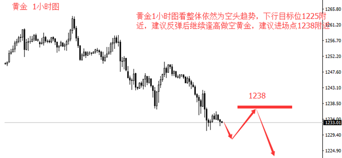 基本面分析 周四公布的數據顯示,美國最新一周初請失業金人數降至44年低位。反映出盡管首季經濟增長仍然溫和,但勞動力供應進一步收緊。加之通脹不斷回升,可能促使美聯儲在本月實施年內首次加息。 然而,真正令金價崩潰的是美聯儲理事鮑威爾的講話。他周四表示,美聯儲今年3月份會議上加息的理由已經“具備”,這迅速令3月會議上升息的幾率飆升至75%,周三晚些時候為66%。 鮑威爾指出,“目前風險平衡已經轉變甚至偏上行,非常接近通脹目標,相信2017年加息3次仍然合理,三月加息在我們的討論日程之中。美聯儲可能會在利率明顯高于零之后開始縮減資產負債表。” 在美聯儲官員講話后,美元兌一籃子貨幣延續此前強勁的升勢,并觸及102.26的近兩個月高位;現貨黃金擴大跌幅,觸及1231.17美元/盎司的逾一周低位;而現貨白銀更是一度暴跌3.8%,觸及近17.68美元/盎司一個月低位。 在本周美聯儲官員輪番釋放鷹派言論之際,近期就業和通脹數據也令美聯儲短期加息的理由變得更加充分。本周的壓軸大戲無疑是周五美聯儲兩大頭號人物的講話。 北京時間周六01:00,美聯儲副主席費希爾(Stanley Fischer)將發表講話;北京時間周六02:00,美聯儲主席耶倫將在芝加哥高管俱樂部就經濟前景發表講話。他們的言論可能為聯儲的政策路徑提供進一步線索。 技術面分析 黃金1小時圖看整體依然為空頭趨勢,下行目標位1225附近,建議反彈后繼續逢高做空黃金,建議進場點1238附近。 歐元目前處于下行趨勢中,今日上方阻力1.054附近,建議1.054附近逢高做空,目標1.048,之后關注晚間美聯儲兩位官員講話,有望再次走出下砸行情,目前走勢上看,下行空間較大。 財經日歷 18:00歐元區1月零售銷售(月率) |