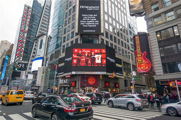 2017年3月3日,一段有關(guān)AETOS艾拓思的影像出現(xiàn)在時代廣場的屏幕之上,影像內(nèi)容不同于傳統(tǒng)的產(chǎn)品廣告,而是2月27日“十年跨越•亞冠起航”AETOS艾拓思與西悉尼流浪者足球俱樂部上海媒體見面會現(xiàn)場精彩回放。2016年,AETOS艾拓思成為澳大利亞足球勁旅西悉尼流浪者足球俱樂部2017亞冠聯(lián)賽的唯一指定合作伙伴,并在亞冠聯(lián)賽第二輪小組賽開賽之際在上海共同召開媒體見面會。 對AETOS艾拓思而言,時至集團成立十周年之際,能夠登陸紐約時代廣場,向全世界展現(xiàn)AETOS艾拓思資本集團的品牌形象與實力,這無疑是各界對AETOS艾拓思最大的肯定,更是屬于AETOS艾拓思的“榮耀時刻”。