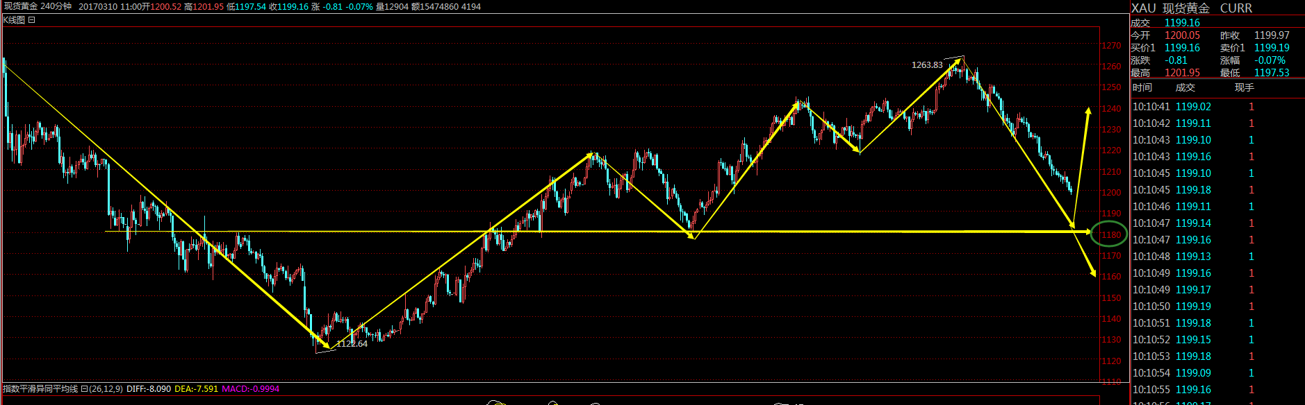 肖禮勇:非農導致黃金加速下跌.多頭是否在蓄力 小時圖來看,黃金連續8連陰不斷開始下跌,MA5與MA10粘合形成死叉向下發散運行趨勢,附圖指標MACD藍色下跌的動能逐漸較強,DIF與DEA粘合處于0軸下方運行趨勢,RSI指標向下發散運行趨勢,KDJ指標向下運行趨勢,4小時圖來看,黃金承壓MA均線運行空頭趨勢,K線排列形成空頭趨勢,附圖指標MACD藍色下跌的動能逐漸緩慢運行,RSI指標向下運行趨勢,短期先看1180的支撐位;上方先看1209的阻力位;本周不斷延續空頭下跌40美金;晚間關注非農數據;日內高位空單操作為主,謹慎抄底! 黃金操作建議: 1200附近空單,目標1190,止損1203 原油行情分析: 原油周四延續下跌。亞盤震蕩修正,歐盤時段反彈50.80附近承壓后爆量破低下行。最低觸及48.80附近。瞬間2美元的大幅下挫完成日內的波動。美盤前反抽后圍繞開盤價50.10附近承壓二次下行,但是只是慣性刷了個低點至48.60.最終收盤在49.50中性位置。日圖收盤帶有下影線的陰K線。 日圖收盤比較中性,留出上下影線,短線在趨勢線一帶略有支撐。而收盤也顯示出支撐。加上周三的大陰下挫。均線系統還未完全拐頭,所以需要時間整理。但是K線形態大陰相對偏空一些。而今日周線才是關鍵。此前已經連續十二周十字K線。本周若能中陰收盤。收在49.60下方,那么下周還將進一步下行。目前還在整理當中。周尾不支持大單邊下跌。偏向震蕩。 短線圖:下探后陽包陰的震蕩。K線暫時進入支撐區域,昨日破位后沒出現連陰。可見暫時走不出大幅度的下跌。今日傾向于震蕩修正為主。即使下跌。也是震蕩的幅度空間。操作上以震蕩區間對待。破低后不追單。壓力50.10 50.80 支撐48.50. 原油操作建議: 50.0附近做空 止損50.60 目標49.0-48.80. 48.30短多 止損47.80 目標49.20. |