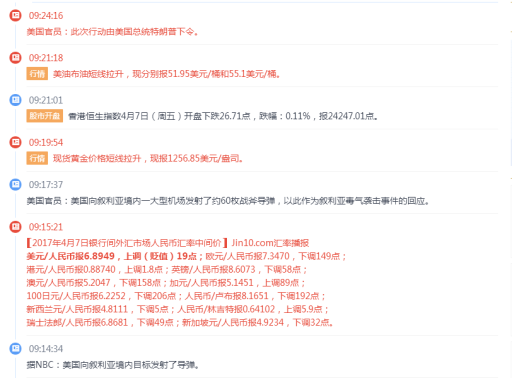 今早(4月7號)北京時間09:10美國總統(tǒng)特朗普發(fā)令向敘利亞境內(nèi)一大型機場發(fā)射了約60枚戰(zhàn)斧導(dǎo)彈,以此作為敘利亞毒氣襲擊事件的回應(yīng)。 至此,油銀金全線暴漲,請各位投資者密切關(guān)注 原油行情分析: