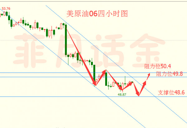 從技術面看,目前短線連續呈下跌趨勢,呈弱勢結構運行。提防下探回升的止跌K線出現,然后留意回升的節點出現。短線圖上,小時圖進入臺階慢跌通道當中。隨著低點的下移,臺階次高點也在下移,由此前的51.40臨界點,下移至昨日的高點處50.20.那么今日將依托昨日高點做止損位反抽先做空。壓力依然在49.7-80區域;反抽觸及后先空一次具體看力度。可能就是小幅刷低就反彈。所以反手做多的位置,結合盤中形態再行安排!重點關注22;30EIA原油庫存數據公布。