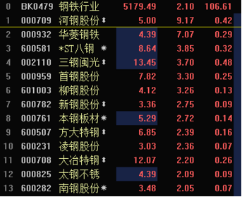 今日早盤,鋼鐵板塊逆市走強,截至發稿,河鋼股份漲9.17%,華菱鋼鐵漲7.07%,*ST八鋼漲3.85%,三鋼閩光漲3.7%,首鋼股份漲3.3%,柳鋼股份漲3.26%。本鋼板材,新鋼股份,凌鋼股份,方大特鋼,大冶特鋼,南鋼股份等股漲超2%。 據悉,地條鋼出清大限將至,消息稱5月開展專項督查。此外受益于鋼材價格上漲和下游需求提升,鋼鐵行業一季度迎來開門紅。4月26日上午,中國鋼鐵工業協會在一季度信息發布會上通報,今年一季度,鋼鐵行業實現良好開局,行業效益在去年基礎上繼續好轉。 分析認為,鋼鐵行業的板塊性機會或更需要關注供需兩端的邊際變化。在近期開工率上行、供給增加的壓力下,需求穩定的判斷沒形成一致預期之前,行業彈性也受到較大壓制。因此投資邏輯方面,受益于供給側改革大背景的優質低PB 龍頭寶鋼股份、業績穩健的優質民營企業方大特鋼,以及細分景氣子品種:如受益于新疆基建高增長的*ST 八鋼、主業穩健具備一帶一路概念的中鋼國際、因電爐需求增加而拉動石墨電極漲價的方大炭素,都值得給予一定關注。 |