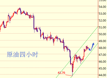 原油日線已經(jīng)完全逆轉(zhuǎn)趨勢,趨勢上也由空轉(zhuǎn)多,隔也價格兩次突破48上方均受阻,當(dāng)然我們并不擔(dān)心此關(guān)口的阻礙,而真正的阻力在49一線,油價若能在近期內(nèi)強勢收復(fù)那么后期有望繼續(xù)站上50上方;四小時走勢上的上漲算是比較強勢的,隔日自盤初開始就一直穩(wěn)步上升,目前在48下方小幅調(diào)整,四小時已經(jīng)形成良好的上升趨勢,故日內(nèi)操作上邱***建議做多為主。
