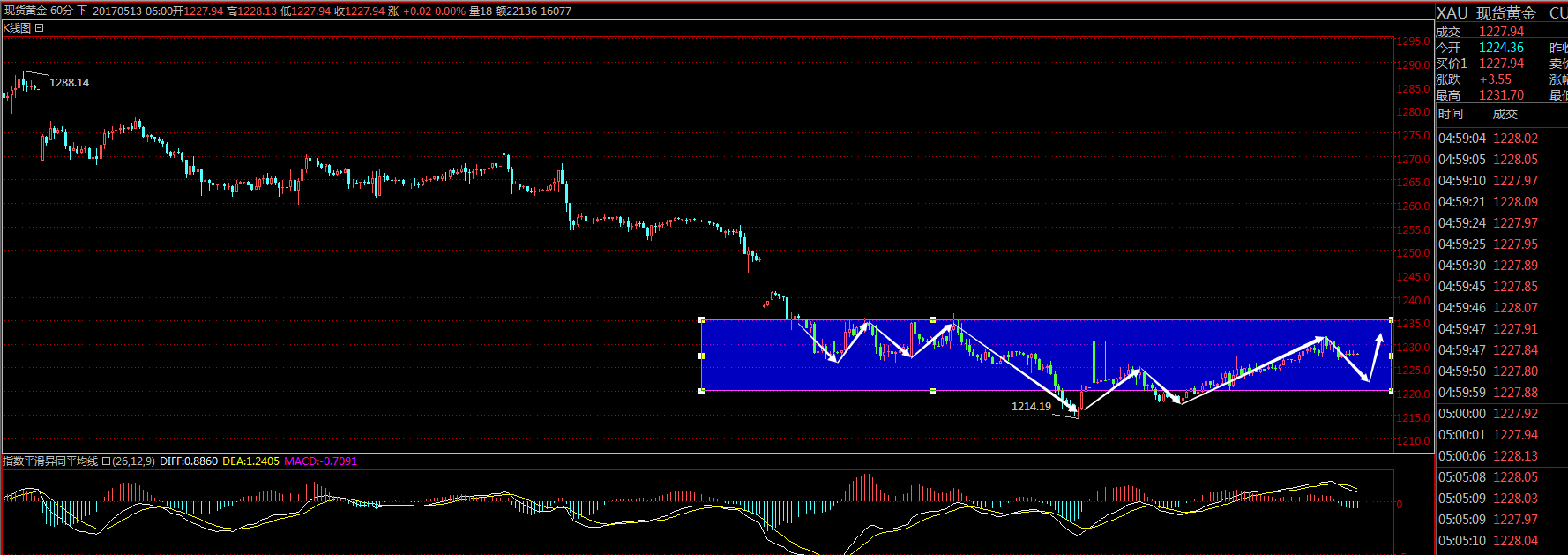 肖禮勇:5.13母親節.黃金區間尋找突破 消息面: 本周的行情周一法國大選終于塵埃落地,中立派馬克龍獲勝使得歐元得到支撐美指回落,如筆者預料中的一樣,金銀行情有著明顯的下跌,而當日晚間的美國就業市場狀況指數表現的好于預期美指拉升大宗商品回落。周二韓國大選開票結束,文在寅以41.1%得票率當選新一任總統,加上周一的法國大選的刺激還未消除,行情有著一波小幅的回調。周三受基本面的影響,金銀行情象征性的回調了一波,但是并沒有達到大多說人的預期;而晚間的EIA公布利多,原油行情也如公布的結果般的上漲。周四英國央行行長講話偏鴿派導致非美貨幣大幅回落,美元盤中反彈,美盤時段的美國上周初請失業金人數也好于預期,不過盈弱的美元并未能借勢強勢上行,給出小高點后快速回落是大宗商品反彈的主要因素,市場也如預期般的來了一波反彈。至于周五行情白天延續周四持續上漲中,晚間美國4月季調后CPI月率公布,美元小幅上漲,而黃金白銀行情并沒有什么變化;反而是原油一波下跌又是一波上漲,行情呈V形態。 黃金技術面: 黃金昨日日線收一根小陽柱;盤中金價走出沖高回落行情,金價開盤后短線震蕩,隨后早盤時段延續周四反彈之勢震蕩走高;歐盤中,由于美數據零售銷售額數據不及預期影響,美元指數短線下挫支撐金價上漲,黃金繼續走高盤中最高觸及1231.82,但是美聯儲加息限制金價漲幅,黃金價格觸及近幾天高點后遇阻震蕩回落,加之美盤時段公布的5月消費者信心指數好于預期影響,金價再度承壓下挫,最終黃金周五收于1228.43,整體可看漲幅達3.39美元,黃金周線小幅收漲。 黃金近幾天雖然有所反彈,但行情不是真的走強,不然從昨天到現在,黃金有足夠的時間上升,去突破1236周高點阻力,事實上能突破1225周三高點也是昨晚美盤后面一些時間才沖高,并且沖高之后還回落了下來,日線現在是轉陽了,但周線的壓制依然存在,突破1225表示短期由下跌轉變為震蕩,周線震蕩收尾,再由下周來繼續走出新的方向,下周操作上建議回落做多為主。 操作建議: 下周1235-1220區間震蕩。1220-1223做多。止損4個點,目標1230 1233-1235做空,止損3個點。目標1225 肖禮勇寄語: 國家助理理財規劃師。交易心得:根據交易定律法則,盡量規避不確定性帶來的無謂止損,耐心的等待風險小利潤大的機會,這里不缺少機會,缺的只是等待機會并贏得機會。市場永遠是對的,沒有比市場更精明 肖禮勇:扣2494314628 |