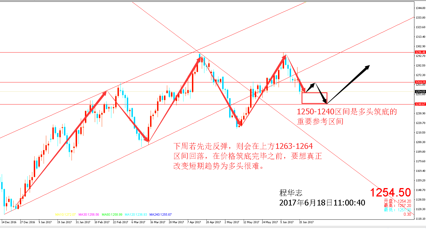 市場消息解讀: 備受關注的美聯儲決議超級之夜果然引發市場劇烈波動。美聯儲如期實施加息,但聲明并不是預期的那么鴿派,同時還公布了縮表計劃方面的更多細節。尤其令人意外的是,有“鴿后”之稱的美聯儲主席耶倫一改以往的鴿派立場,在新聞記者會大發鷹派言論。美元受美聯儲聲明和耶倫講話的刺激大幅飆升,而在稍早疲弱CPI和零售銷售數據后,美元曾一度跌至七個月低點,黃金走勢同樣跌宕起伏,上演“先喜后悲”一幕。 盡管黃金價格走勢疲弱不堪,但市場上依然有一些樂觀聲音,因在美國經濟復蘇開始顯示出動能衰退跡象的情況下,市場懷疑美聯儲是否能激進加息。美聯儲加息25個基點并意外釋放出鷹派傾向的同一天,美國公布的零售銷售和通脹數據表現疲弱。零售銷售連續四個月令市場失望,而核心CPI數據則跌至兩年低位。 從市場表現來看,黃金近期應該會完全消化美聯儲的最新舉措。而且,盡管經濟數據疲軟,美聯儲仍然在追加利率,縮小資產負債表。這將最終影響股票估值,從而推動投資者在接下來的幾周內恢復對黃金的購買。 關于加息后續,盡管耶倫主席表示,美聯儲今明兩年處于繼續加息軌道之上,但市場并不情愿提高其預期。加息預期自本周早些時候的逾一個月低位略有上升,但仍然位于關鍵水平下方。歷史上,美聯儲從未在加息概率低于50%的情形下加息。 國際黃金走勢解析: 過程不重要,關鍵是結果。無論美聯儲的強硬表現的多么沒道理,但只要它那么做了,那就會對黃金市場帶來利空沖擊。而且如果美聯儲要繼續這種激進的做法,今年余下時間,黃金可能被排除任何重大的上漲。美元的走強對應黃金走弱是一個不可調和的關系。從當前市場交投環境來看,因為當初對加息預期非常高。所以美聯儲利率上調后的拋售可以理解為過度反應,然而,關于增長的評論,即通貨膨脹的‘疲軟’和綜合經濟報告,都表明加息將會停止,這對黃金來說是積極的。 回歸盤面,周線雙陰,自高點1295美元開始的下跌目前依然還在繼續。上周五經過白盤的震蕩之后,晚間小幅反彈,整體的短線弱勢表現依舊明顯。下周周初延續低位震蕩的幾率較大,但是考慮到目前地緣政治格局較為混亂,會給短線帶來一定的支撐,所以下跌空間并不會很大,若1250美元被破,則有機會在短期延續回踩1245-1240支撐。反彈時機還需要筑底過程來驗證。總的來說,下周的走勢看好下跌之后修正,周初做空看1245-1240. 市場方面,下周美國經濟日歷相對清淡,不過下周初將迎來多位美聯儲官員講話,如委員們重申耶倫的鷹派基調,其可能會給黃金帶來進一步風險。 聽了很多大道理,可依然做不好交易。學習了很多理論知識,可仍然不能游刃有余。如果我們不貪婪,我們不會被打敗,如果我們不恐懼,我們將獲得勝利,有時候想證明給一萬個人看,但發現最后能懂的只有自己。市場的生存法則就是弱肉強食,注定有一批人將被市場所淘汰。佛度有緣人,我帶有心人。 以上分析不做具體進場點位,僅供參考。投資有風險,入市需謹慎。對行情有疑問或者操作不理想的朋友可與筆者本人溝通。 文/程華志 |