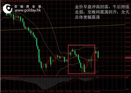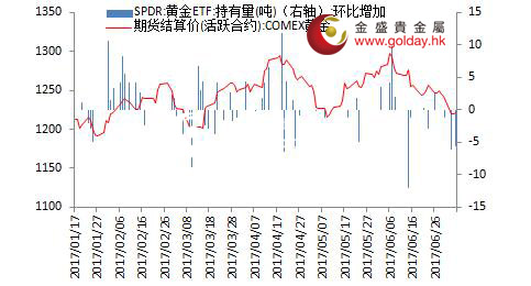 上一交易日現貨黃金開盤1226.67美元/盎司,最高1228.67美元/盎司,最低1217.31美元/盎司,收盤1226.69美元/盎司,收盤上漲3.91美元,漲幅0.32%。日內來看,金價早盤沖高回落,午后持續走弱,至晚間震蕩回升,全天總體寬幅震蕩。美元指數沖高回落,消息面多空夾雜,主要現貨投資者再次減倉,技術面繼續修復。 圖1黃金價格走勢 消息面上看,數據顯示美國5月份工廠訂單較前月下降0.8%,弱于預期的下降0.5%。此外,美聯儲6月份會議紀要顯示,決策者未能就何時啟動縮表達成一致,部分官員偏向未來數月內宣布啟動縮表,而另一些決策者強調,推遲到今年稍晚再做決定將有更多時間評估經濟活動和通脹前景。該情況與此前的會議聲明,以及近期主要官員的表態情況較為一致,目前美聯儲內部的分歧出現,但是市場更傾向于認為9月開始縮表,12月開始加息。且根據聯邦基金利率期貨,市場正在將該預期計入價格,這對金價走勢并非利多。 另外,聯合國安理會就朝鮮最新挑釁行動召開緊急會議,美國代表稱,朝鮮的導彈試射正在迅速關閉外交解決的大門,倘若必要美國將對朝鮮動武。這一表態可能將加劇地緣形勢的緊張。中國和俄羅斯尚未有明顯區別于此前的態度。同時,中國邊界被印度越界一事尚未解決,地緣政治形勢正在逐步惡化,這對金價是潛在的利多。