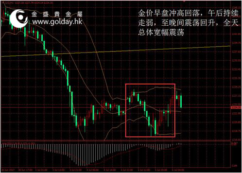 上一交易日現貨黃金開盤1226.67美元/盎司,最高1228.67美元/盎司,最低1217.31美元/盎司,收盤1226.69美元/盎司,收盤上漲3.91美元,漲幅0.32%。日內來看,金價早盤沖高回落,午后持續走弱,至晚間震蕩回升,全天總體寬幅震蕩。美元指數沖高回落,消息面多空夾雜,主要現貨投資者再次減倉,技術面繼續修復。 圖1黃金價格走勢 消息面上看,數據顯示美國5月份工廠訂單較前月下降0.8%,弱于預期的下降0.5%。此外,美聯儲6月份會議紀要顯示,決策者未能就何時啟動縮表達成一致,部分官員偏向未來數月內宣布啟動縮表,而另一些決策者強調,推遲到今年稍晚再做決定將有更多時間評估經濟活動和通脹前景。該情況與此前的會議聲明,以及近期主要官員的表態情況較為一致,目前美聯儲內部的分歧出現,但是市場更傾向于認為9月開始縮表,12月開始加息。且根據聯邦基金利率期貨,市場正在將該預期計入價格,這對金價走勢并非利多。 另外,聯合國安理會就朝鮮最新挑釁行動召開緊急會議,美國代表稱,朝鮮的導彈試射正在迅速關閉外交解決的大門,倘若必要美國將對朝鮮動武。這一表態可能將加劇地緣形勢的緊張。中國和俄羅斯尚未有明顯區別于此前的態度。同時,中國邊界被印度越界一事尚未解決,地緣政治形勢正在逐步惡化,這對金價是潛在的利多。