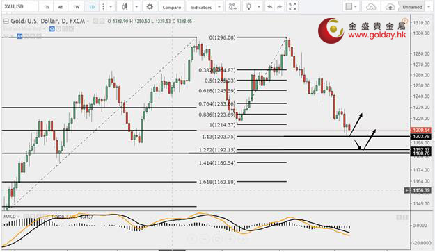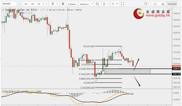 現貨黃金周二(7月11日)亞市早盤開于1212.08美元/盎司,最低下探1204.80美元/盎司,最高上漲至1215.40美元/盎司,收于1213.94美元/盎司,上漲1.14美元,漲幅0.09%。 美聯儲目標利率料將繼續低于澳洲聯儲政策利率;掉期市場交易員不相信那些來自澳洲聯儲和美聯儲的說辭,認定澳大利亞的利率會進一步延續已經維持了十六年的高于美國政策利率的狀況;盡管美聯儲決策者預計從現在起到2018年底會有四次加息,利率水平將因此而升至2%-2.5%的水平,但是當前的遠期市場行情表明,來年美聯儲只會加息一次;市場行情同時表明,澳洲聯儲也會加息一次,盡管參與彭博調查的絕大多數經濟學家都認為,繼行長洛威最近講話中出現了立場溫和轉向鴿派的傾向后,澳大利亞的政策利率未來12個月仍將維持在1.5%的紀錄低點不變。 據華爾街日報報道,全球央行焦點正在從美聯儲轉向歐洲央行,歐洲央行正在考慮逐步退出多年來的超寬松刺激政策,這種貨幣再平衡可能推動資本流出美國,使原先涌入美國市場追逐高回報的海外資金流發生逆轉;為了確保市場平穩過渡,美聯儲和歐洲央行需要加強溝通與協調。 路透表示,特朗普推特敦促國會通過擱淺的新醫保法案;美國總統特朗普當地時間7月10日在推特上敦促國會通過醫保法案;但事實上,醫保法案通過還存在巨大障礙;一名資深議員稱參議院在下周之前不大可能審議這一擱淺的議案;眾議院今年5月批準了其醫保法案,但參議院版法案似乎遇到越來越大的麻煩。議員們為期一周的休會期結束紛紛回到華盛頓;特朗普在推特上寫道:“我無法想像,國會膽敢在尚未完全批準完美的新醫保法案的情況下就離開華盛頓,收拾收拾走人!”國會將從7月底開始再次休會,直到9月5日。 7月11日黃金ETFs數據顯示,截止7月10日黃金ETF-SPDR Gold Trust的黃金持倉量832.39噸,較上一交易日減少2.96噸; Gold Trust 7月11日數據顯示,Gold Trust 7月10日黃金持有量211.41噸,較上一交易日增加0.65噸。白銀持有量10720.2噸,較上一交易日增加91.17噸。 黃金技術分析: 現貨黃金周二(7月11日)亞盤和歐盤再度小幅震蕩走低。之前我們說下方可以重點關注1203和1189美元/盎司附近,分別是黃金分割1.13和1.27黃金分割的位置,獲得支撐可以考慮做多,昨日的最低點1204接近1203,但是需要注意的是,從目前的形態看,如果要想確認黃金在1204企穩,小時級別這次的回調最好不要下破1209-1207美元/盎司區間。如果下破不排除會再探1203附近筑雙底或者繼續下探1190美元/盎司的可能性。 黃金操作建議: 上方阻力:1220、1230、1240-1245