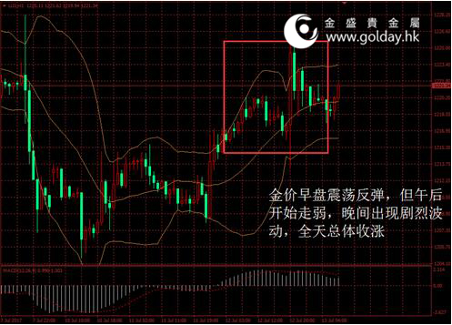 上一交易日現(xiàn)貨黃金開盤1217.17美元/盎司,最高1225.54美元/盎司,最低1213.48美元/盎司,收盤1220.18美元/盎司,收盤上漲2.93美元,漲幅0.24%。日內(nèi)來看,金價(jià)早盤震蕩反彈,但午后開始走弱,晚間出現(xiàn)劇烈波動(dòng),全天總體收漲。消息面偏多,美元指數(shù)有所回落,主要現(xiàn)貨投資者資金不變,技術(shù)面走勢(shì)持續(xù)改善。 圖1黃金價(jià)格走勢(shì) 消息面上看,美聯(lián)儲(chǔ)主席耶倫表示,美國(guó)經(jīng)濟(jì)在未來幾年應(yīng)該會(huì)繼續(xù)擴(kuò)張,從而支持繼續(xù)加息,但是通脹是重要不確定因素,美聯(lián)儲(chǔ)正關(guān)注過低的通貨膨脹率,利率無(wú)需進(jìn)一步升高太多即可達(dá)到中性狀態(tài)。同時(shí),耶倫稱預(yù)期中的FOMC縮表應(yīng)該相對(duì)較早就會(huì)啟動(dòng),資產(chǎn)負(fù)債表應(yīng)該會(huì)在2022年前后達(dá)到正常水平,暗示美聯(lián)儲(chǔ)可能在9月將開啟縮表。但是目前來看,未來修改加息路徑的可能性上升,明年加息三次的點(diǎn)陣圖預(yù)測(cè),未來不排除修改為兩次。但今年12月升息是否會(huì)“取消”尚無(wú)法斷定。根據(jù)聯(lián)邦基金利率期貨的推測(cè),市場(chǎng)隱含12月加息的概率再次降至低于不加息的水平。總體來說,無(wú)論是12月不加息還是明年加息少于三次都是對(duì)金價(jià)的利多,昨晚金價(jià)的盤中大幅反彈也是受到此影響。