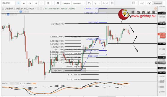 現(xiàn)貨黃金周四(7月13日)亞市早盤開于1217.00美元/盎司,最低下探1213.40美元/盎司,最高上漲至1225.45美元/盎司,收于1219.82美元/盎司,上漲2.72美元,漲幅0.22%。 英國央行今日表示,預計第三季度對企業(yè)的信貸維持不變;預計銀行業(yè)第三季度可用的抵押貸款將增加;三季度銀行會進一步收緊信用卡及其他無抵押貸款的標準;預計第三季度抵押貸款需求上升,但無擔保貸款需求維持不變;大公司貸款需求在第三季度將進一步下降。 英鎊暴跌推高通脹降低民眾收入,首相特雷莎·梅躺槍;英國首相特雷莎梅在上個月的大選中未能加強多數(shù)席位優(yōu)勢,這其中的原因之一,就是通脹上升,而收入下降,導致英國家庭不滿;每季公布的英國家庭可支配收入較上年同期在下滑。之前約一年的時間,可支配收入同比增幅一直在放緩;而與此同時,通脹卻在上升,尤其是在英國退歐公投后,當時英鎊大幅貶值。圖表顯示,這兩組數(shù)據(jù)在去年第四季發(fā)生交叉;根據(jù)最新的兩組可比數(shù)據(jù),通脹年率要比可支配收入同比變動高出約370個基點。 歐洲央行管委魏德曼表示,歐洲央行不應給予綠色債券優(yōu)先購買待遇;歐洲央行管委魏德曼在法蘭克福就綠色金融發(fā)表講話稱,中立是歐元系統(tǒng)運轉(zhuǎn)框架的重要原則;為免打開潘多拉的盒子,我們不應該給予綠色債券優(yōu)惠待遇,比如說在公司債券購買計劃或擔保框架下給予優(yōu)待;無論何種優(yōu)待,都會增加我們單一貨幣政策傳導的國別差異;綠色經(jīng)濟將需要資本密集的轉(zhuǎn)型,對新技能、機構(gòu)和科技進行投資;雖然公共資金很重要,但只能提供必要投資的一小部分,這意味著大部分投資需求要靠私人資本來滿足。 7月13日黃金ETFs數(shù)據(jù)顯示,截止7月12日黃金ETF-SPDR Gold Trust的黃金持倉量832.39噸,較上一交易日持平;Gold Trust 7月13日數(shù)據(jù)顯示,Gold Trust 7月12日黃金持有量211.41噸,較上一交易日持平。白銀持有量10855.49噸,較上一交易日增加61.76噸。 黃金技術(shù)分析: 現(xiàn)貨黃金周四(7月13日)亞盤和歐盤先小幅走高后有所回落。上方重點關(guān)注1225和1230美元/盎司附近。下方暫時關(guān)注1218美元/盎司一線,也是回調(diào)0.618的位置,如果保持上方依然保持多頭思路不變,如果下破,可能會回到1213美元/盎司附近,短線就要開始轉(zhuǎn)成偏回調(diào)的思路。 黃金操作建議: 上方阻力:1225、1230、1240-1245