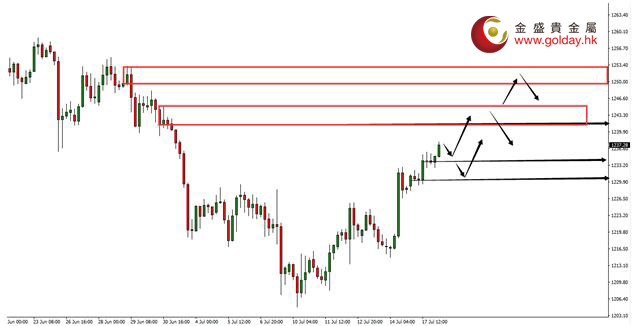 現貨黃金周一(7月17日)亞市早盤開于1228.58美元/盎司,最低下探1227.80美元/盎司,最高上漲至1235.94美元/盎司,收于1233.88美元/盎司,上漲5.48美元,漲幅0.43%。 特朗普醫改法案或難以獲得通過,美元回落歐元升至十四個月高位;據外媒消息稱,又有兩位共和黨參議員據悉將就醫改法案投反對票,這意味著這一法案難以獲得通過;消息公布后,美元指數快速滑落至日低95.07,距離隔夜低點95.02僅一步之遙,下破將直逼2016年9月低位94.93。后因外媒消息稱,又有兩位共和黨參議員據悉將就醫改法案投反對票,這意味著這一法案難以獲得通過;美元指數跌破95關口,刷新2016年9月8日以來低位94.88; 瑞銀在昨日發布的報告中描述了黃金的有利背景,但也表示現在看來似乎沒有到使黃金大幅拉升的地步。黃金從本月早些時候的多月低點回升“有幾個壓倒一切的,對黃金有利的因素:凈多倉位非常輕,美元處于壓力之下,利率從近期高點回落,最近美國數據相對疲軟。”部分原因也可能是由于許多市場參與者在暑假期間離開。但大多數人都不情愿在政策正常化的背景下,有意義地參與黃金市場,不僅是美聯儲,還有歐洲央行。這是目前黃金最大的挑戰。 渣打銀行在昨日發布的報告中稱,最近黃金與美元的逆相關關系有所增強,走弱的美元對黃金形成支撐。黃金周五在美國零售銷售和消費者通貨膨脹疲軟預期之后反彈。“黃金與美國的宏觀因素保持著強烈的相關性,而與美國10年期國債密切相關的是其最強的關系。近三個月的滾動關聯度已經上升至近65%,而與美國10年期國債的三個月滾動關聯約為50%。在脆弱的實物需求層面,黃金價格正在努力獲得上漲勢頭,宏觀驅動力也越來越有利。” 7月18日黃金ETFs數據顯示,截止7月17日黃金ETF-SPDR Gold Trust的黃金持倉量827.07噸,較上一交易日減少1.77噸;Gold Trust 7月18日數據顯示,Gold Trust 7月17日黃金持有量211.41噸,較上一交易日持平。白銀持有量10855.49噸,較上一交易日持平。 黃金技術分析: 現貨黃金周一(7月17日)亞盤和歐盤先維持高位震蕩,美盤再度收到醫改法案的影響出現上漲。昨日說過上方關注1231.20-1232.70美元/盎司區間,首次觸及該區間可以做空,二次觸及由于多頭形態因此穩健的建議放棄,如果上破,上方關注1240-1245和1250美元/盎司區間,首次達到區間可以做空。下方目前關注1234-1233、1231-1229美元/盎司區間,回落獲得支撐可以做多。 黃金操作建議: 上方阻力:1240-1245、1250