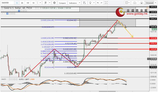 現(xiàn)貨黃金周三(7月19日)亞市早盤開于1233.90美元/盎司,最低下探1232.51美元/盎司,最高上漲至1244.56美元/盎司,收于1242.01美元/盎司,上漲8.13美元,漲幅0.66%。 日本央行7月料維持寬松,日元下半年表現(xiàn)堪憂;明日日本央行將公布利率決議,然而盡管全球主要央行開始偏向收緊政策,料日本央行仍然會維持寬松;路透和彭博根據(jù)隔夜掉期利率(OIS)測算的結(jié)果顯示,日本央行在7月保持利率不變的幾率分別高達99.50%和98.7%;盡管近期全球主要央行“鷹風不斷”,加拿大央行更進行了7年來首次加息,但市場普遍預計日央行此次不會加息;日本保持利率不變的原因可能在于日本通脹停滯不前,因此日本央行也可能調(diào)降其樂觀的通脹展望;此外,日本央行還可能略微上修經(jīng)濟增長預期;多家投行認為,在這一背景下,下半年日元表現(xiàn)料落后于其他主要貨幣。 一家英國貴金屬咨詢公司表示,今年波動較大的白銀市場可能會在未來12個月里出現(xiàn)積極的價格上漲,較當前上漲25%。Metals Focus的分析師George Coles昨日告訴彭博,銀價將從目前的16.27美元/盎司水平反彈至少25%,在一年內(nèi)以20.25美元/盎司的價格進行交易。到目前為止,白銀的價格波動很大。首先,它在2017年初上漲了17%,隨后回吐所有漲幅,盡管產(chǎn)量下降,工業(yè)需求不斷增長。Coles解釋說,銀價反彈即將到來的主要原因是美國經(jīng)濟增長令人失望,這將轉(zhuǎn)化為美聯(lián)儲的加息步伐放緩。。 Coles指出,銀價的另一種提振可能來自Comex投機者的空頭回補,盡管銀價在過去三個月里出現(xiàn)很多阻力,但許多投資者正將資金投入白銀ETFs,資產(chǎn)達到創(chuàng)紀錄的21,211噸,價值110億美元。但與此同時,Coles指出,期貨市場仍然看跌,因為對沖基金在兩年內(nèi)持有第一個凈空頭寸。Coles指出,這兩種截然相反的趨勢得到了兩種不同類型的投資者的支持——小型交易員購買了白銀ETFs,以分散他們的投資組合,而大型對沖基金則做空了Comex期貨。 7月19日黃金ETFs數(shù)據(jù)顯示,截止7月18日黃金ETF-SPDR Gold Trust的黃金持倉量821.45噸,較上一交易日減少5.62噸;Gold Trust 7月19日數(shù)據(jù)顯示,Gold Trust 7月18日黃金持有量211.41噸,較上一交易日持平。白銀持有量10826.08噸,較上一交易日減少29.41噸。 黃金技術(shù)分析: 現(xiàn)貨黃金周三(7月19日)亞盤和歐盤小幅震蕩下行。上方關注1240-1245和1250-1253美元/盎司區(qū)間,首次達到區(qū)間可以做空。下方目前關注1234-1233、1231-1229和1225美元/盎司區(qū)間,回落獲得支撐可以做多。目前反彈形態(tài)良好,高點和低點逐漸抬高的形態(tài)未改變之前,思路盡量以回調(diào)做多為主,目前1255是多頭趨勢的多空分水,不破1255從技術(shù)上都要看多頭。 黃金操作建議: 上方阻力:1240-1245、1250-1253