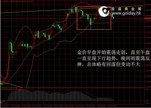 上一交易日現貨黃金開盤1242.21美元/盎司,最高1243.85美元/盎司,最低1235.82美元/盎司,收盤1240.94美元/盎司,收盤小幅下跌1.17美元,跌幅0.09%。日內來看,金價早盤開始震蕩走弱,直至午盤一直呈現下行趨勢,晚間則震蕩反彈,總體略有回落但變動不大。美元指數有所反彈,消息面略偏多,主要現貨投資者仍在大幅減倉,技術面來看仍在關鍵點位附近。 圖1黃金價格走勢 消息面上看,昨日公布的數據顯示,美國6月新屋開工121.5萬套,環比增長8.3%,均超過預期值和前值;6月營建許可125.4萬套,環比增長7.4%,也大幅超出預期值和前值。總體來看,美國房地產市場正在從此前的疲弱中走出,未來可能將對經濟復蘇產生積極影響。從長期來看,基本面的走強可視作金價的利空因素。 此外,美國和中國高層官員結束經濟對話,但取消了會后記者會令對話結果蒙上陰霾。美國財政部和商務部官員不愿對美中經濟對話置評,同時中國代表團團長、國務院副總理汪洋也未對記者發言。投資者將對話和沒有新貿易聲明所釋出的負面訊息,解讀為更有可能的是特朗普政府將基于國家安全的理由,推進全面的鋼鐵關稅或配額。我們認為,這可能令未來中美貿易摩擦的可能性上升,對金價將是潛在利多。 歐洲方面,根據彭博的一項調查,經濟學家預期歐洲央行今日公布的政策將按兵不動,到9月才會宣布放慢購債。但受訪者對于央行是否可能在今日去除必要時加強量化寬松的承諾持不同意見。需關注今晚公布的歐央行會議決議,一但歐元走強壓制美元指數,對金價將有偏多影響。