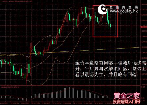 今日現貨黃金開盤121255.04美元/盎司,截至北京時間下午5點30分,最高價格為1257.57美元/盎司,最低價格為1251.31美元/盎司。日內來看,金價早盤略有回落,但隨后逐步走升,午后則再次觸頂回落,總體上看以震蕩為主,并且略有回落。美元指數下探后反彈總體變動也不大,消息面保持平靜,技術面略有走弱。 圖 1 金價日內走勢 消息面上看,今日公布的數據顯示德國6月進口價格指數同比2.5%比前值4.1%和預期2.9%明顯走弱,環比-1.1%也弱于預期的-0.7%和前值-1%。法國6月PPI同比增速1.4%比前值2.1%有所回落。但環比-0.4%較前值-0.6%有所改善。意大利工業訂單和銷售數據明顯走強,德國7月IFO商業景氣指數也有所上升。總體來看,歐元區經濟復蘇仍在繼續,但是通脹的增速仍相對較弱,這雖然對歐洲央行的貨幣政策形成拖累,但是難以改善其收緊的大方向,日內歐元走強,美元指數受到一定壓制。 市場層面看,日本股市今日沖高回落,總體略微下跌,趨勢上繼續圍繞20000點震蕩,日經指數收跌20.47點或0.1%至19955.20。中國股市微收跌,部分熱點板塊輪動過快,投資者觀望居多,大盤整日維持窄幅震蕩走勢,上證綜指收跌6.91點或0.21%至3243.69%。香港股市日內震蕩基本收平,恒生指數微漲5.22點或0.02%至26852.05點。匯率方面,午后歐元小幅沖高壓制美指回落,但隨后美指反彈,總體波動亦不大。國際能源價格承接昨晚上漲趨勢,進一步沖高至49美元以上,今晚公布的美國API能源庫存數據將受到市場矚目,布倫特油價漲1%左右。 技術面上看,金價持續兩日在1260美元下方震蕩,并且日內出現回落,表明多頭開始初現疲弱跡象,需警惕日內的空頭反撲,但能否完成突破將受到明天美聯儲會議決議的影響。短期來看,金價或繼續在1260美元下方震蕩,暫持謹慎樂觀態度,支撐位于1227美元一帶。中期來看,1295至1300美元附近仍是重要壓力位,下方重要支撐仍位于1200美元整數關口,中期可暫繼續按照震蕩反彈對待。 此外,今晚9點將發布美國5月S&P/CS20座大城市房價指數,且今晚開始美聯儲將召開貨幣政策會議,至周四凌晨2點公布會議結果,需要重點關注。 投資有風險,入市需謹慎。以上建議僅供參考,不作為唯一投資依據。 金盛貴金屬投資分析部 |