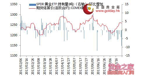 上一交易日現(xiàn)貨黃金開盤1255.04美元/盎司,最高1257.57美元/盎司,最低1248.95美元/盎司,收盤1249.83美元/盎司,收盤下跌5.14美元,跌幅0.41%。日內(nèi)來(lái)看,金價(jià)早盤略有回落,午后曾有反彈但隨即再次走低,晚間持續(xù)低位震蕩,全天總體繼續(xù)走弱。美元指數(shù)從低位反彈,消息面影響小,主要現(xiàn)貨投資者減倉(cāng)幅度擴(kuò)大,技術(shù)面看偏空。 圖1黃金價(jià)格走勢(shì) 消息面上看,美國(guó)5月S&P/CS20座大城市房?jī)r(jià)指數(shù)同比增速略有加快,但環(huán)比增速仍不高,顯示房地產(chǎn)價(jià)格仍然穩(wěn)步上漲。美聯(lián)儲(chǔ)方面,特朗普接受《華爾街日?qǐng)?bào)》采訪時(shí)稱,耶倫和他的首席經(jīng)濟(jì)顧問(wèn)Cohn都是美聯(lián)儲(chǔ)主席一職候選人,再次暗示可能在明年更換美聯(lián)儲(chǔ)主席一職。此外,美國(guó)眾議院表決通過(guò)加強(qiáng)對(duì)俄羅斯制裁的法案,并將阻止總統(tǒng)特朗普單方面取消對(duì)俄特定制裁措施,同時(shí)該法案還對(duì)伊朗和朝鮮施加新的制裁。但市場(chǎng)對(duì)地緣政治的擔(dān)憂并不強(qiáng)烈。 歐洲方面,IMF呼吁歐洲央行維持刺激措施,因經(jīng)濟(jì)面臨重大下行風(fēng)險(xiǎn)。該表態(tài)令歐元沖震蕩回落,抹去了早些時(shí)候的漲幅。我們認(rèn)為,歐元區(qū)下半年開始削減QE,明年上半年停止QE并且開始逐步加息的收緊路徑并不算快,歐央行大概率也將堅(jiān)持此“計(jì)劃”。