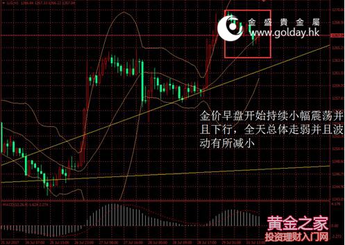 今日現貨黃金開盤1259.25美元/盎司,截至北京時間下午5點30分,最高價格為1270.62美元/盎司,最低價格為1265.63美元/盎司。日內來看,金價早盤開始持續小幅震蕩并且下行,全天總體走弱并且波動有所減小。美元指數從一年多以來低位反彈,消息面平靜,技術面總體中性略偏空。 圖1金價日內走勢 消息面上看,今日公布的數據顯示,歐元區7月CPI同比增速初值報1.3%,持平于前值和預期,核心CPI同比增長1.2%,略高于前值1.1%和預期1.1%?傮w來看歐元區通脹證如我們所料的進入短暫的穩定階段,甚至不排除有超預期反彈的可能性,這是令市場預期歐洲央行收緊政策的潛在因素,對金價而言也是潛在的偏多因素。 此外數據顯示,日本6月工業產出同比和環比增速均超預期增長,中國7月官方制造業PMI略有回落,主要是由于產出分項回落,表現需求的新訂單等數據回落有限,且價格分項大幅上升。總體來看,中國和日本,以及全球經濟復蘇的趨勢仍不變,這對未來通脹回升將是正面影響因素。 市場層面看,日本股市創六周半最低收位,指數權重股遭拋售,日經指數收跌0.2%至19925.18點。中國股市收創三個半月新高周期股領漲,后市有望沖擊3300點,上證綜指收報3273.03點,漲19.79點或0.61%。香港股市連續七個月收漲,受資源類股漲勢提振,恒生指數今日收漲1.3%至27323.99點。匯率方面,美元指數持穩在近13個月低點,本周將公布多項數據或將決定美元指數下一步的運行方向。國際能源價格觸及兩個月高位,美國市場收緊,且委內瑞拉可能將遭制裁,布倫特油價反彈0.23%。 技術面上看,金價上周五已經向上突破1260美元位置,雖然今日出現小幅回調,但是趨勢上仍保持偏多的態勢。短期來看我們仍保持樂觀,1257美元-1260美元可暫視作支撐位,趨勢上可能延續目前方向至1300美元。中期來看,1295至1300美元附近仍是重要壓力位,下方重要支撐仍位于1200美元整數關口,中期可暫繼續按照震蕩反彈對待。 投資有風險,入市需謹慎。以上建議僅供參考,不作為唯一投資依據。