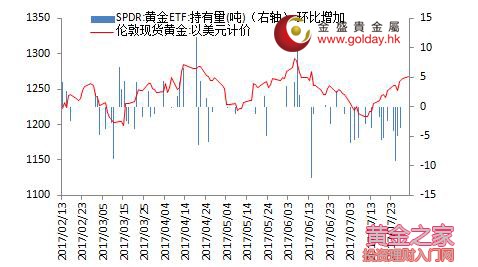 資金面上,全球最大的黃金上市交易基金SPDR Gold Trust的黃金持倉量上一個交易日不變,目前持倉量為791.88噸,此前一個交易日倉位也不變,上次變動是上周四減少3.54噸。目前來看,在消息面偏多并且金價反彈之后,現貨投資者停止減倉,但在持續增倉行動來臨之前,前期大幅減倉對金價的潛在影響仍需要予以警惕。 圖2黃金ETF倉位變動情況 市場層面看,美國股市連續第六天上漲并再。紀錄新高,經濟數據大多支持全球增長勢頭并且不少公司業績優于預期,讓投資者有理由進一步看漲,標普500指數上漲0.2%報2476.35點;歐洲股市也普遍走高。斯托克歐洲600指數上漲0.6%報380.26點。債市方面,美國國債上漲,弱于預期的7月汽車銷售引發加息對于消費支出沖擊的擔憂;歐洲債市則出現回落,德國、法國10年國債收益率上行均超過5個基點。匯率方面,美元三天來首次上漲,但漲勢仍然受到白宮事態發展的束縛,特朗普政府推進立法議程的能力受關注。國際能源價格下跌,投資者等待庫存進一步下降的信息,布倫特油價跌2.3%。 技術面上看,金價在1260美元上方持續整理,且昨晚振幅放大顯示多空博弈激烈,如金價進一步回落可關注1260美元的日內支撐力度。短期來看暫仍保持樂觀,趨勢上可能延續目前方向至1300美元,時間則為8月中旬前后。中期來看,1295至1300美元附近仍是重要壓力位,下方重要支撐仍位于1200美元整數關口,中期可暫繼續按照震蕩反彈對待。 投資有風險,入市需謹慎。以上建議僅供參考,不作為唯一投資依據。