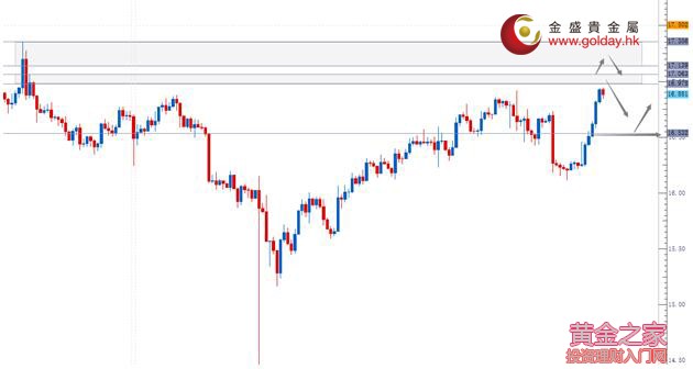 下方支撐:1262、1260.50-1259.50、1255.40-1253.80 白銀技術分析: 現貨白銀周四(8月10日)亞盤和歐盤保持上行走勢,達到上方阻力區間。上方重點關注區域是16.97-17.06和17.14-17.36美元/盎司的阻力,尤其是17.14-17.36目前看有較大概率會出現回調反轉。下方關注16.50、15.90-16.03和15.70-15.60美元/盎司支撐區域。 白銀操作建議: 上方阻力:16.97-17.06、17.14-17.36 下方支撐:16.90、16.50、15.90-16.03、15.70-15.60 今日重要數據: 20:30 美國至8月5日當周初請失業金人數(萬人) 20:30 美國7月PPI月率 21:45 美國至8月6日當周彭博消費者信心指數 22:30 美國至8月4日當周EIA天然氣庫存(億立方英尺) 22:00 美國紐約聯儲主席杜德利參加關于就業趨勢和薪酬不均的經濟簡報會