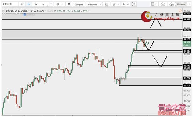 白銀技術分析: 現貨白銀上周五(8月11日)亞盤和歐盤高位小幅震蕩,美盤震蕩回落。上方重點關注區域是17.14-17.36美元/盎司的阻力,上周說過17.14-17.36目前看有較大概率會出現回調反轉,目前看確實出現了幅度不錯的回調。不破空單持有,上破則觀望,但不追多,關注17.60-17.73美元/盎司。下方關注16.85、16.50、15.90-16.03美元/盎司支撐區域。 白銀操作建議: 上方阻力:17.14-17.36、17.60-17.73 下方支撐:16.85、16.50、15.90-16.03 今日重要數據: 17:00 歐元區6月工業產出月率 注:入市有風險,投資需謹慎,以上建議僅供參考,不做為投資唯一依據。