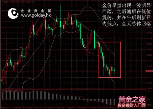 今日現貨黃金開盤1281.68美元/盎司,截至北京時間下午5點30分,最高價格為1281.83美元/盎司,最低價格為1272.58美元/盎司。日內來看,金價早盤出現一波明顯回落,之后隨后在低位震蕩,并在午后刷新日內低點,全天總體回落。美元指數出現反彈,消息面相對前期較為平靜,技術面仍以弱勢為主。 圖 1 金價日內走勢 消息面上看,日內公布的數據顯示,英國國家統計局公布,7月CPI較前月下降0.1%,較上年同期上升2.6%,此前市場預期分別為持平和上升2.7%;7月PPI較前月上升0.1%,較上年同期上升3.2%,同比漲幅為2016年12月以來最低;PPI投入物價較上年同期上升6.5%,為2016年7月以來最低。總體來看,英國7月消費者物價通脹意外持穩,因為能源價格下降。其他跡象也顯示,家庭購買力所承受的壓力可能正在慢慢趨于平穩。英鎊大幅回落,推高了美元指數,并令金價承壓。 市場層面看,日本股市結束四連跌收漲1.1%,因美朝緊張局勢相關擔憂緩解,日經指數收漲1.1%至19753.31點。中國股市連續第二日收升,金融板塊再度領漲,但大盤短線或受壓,上證綜指收報3251.26點,漲13.90點或0.43%。香港股市收跌,獲利了結壓力超過了銀行類股表現強勁所提供的支撐,恒生指數跌0.3%收報27174.96點。匯率方面,美元兌日圓和瑞郎的漲勢帶動美元全線走升,因美朝之間的緊張局勢暫時緩和。國際能源價格基本持穩,隔夜油價曾因美元走高及中國擔憂而大跌,,布倫特油價微漲0.18%。 技術面上看,金價早盤出現一波明顯回落,之后隨后在低位震蕩,并在午后刷新日內低點,全天總體回落。目前資金面和技術面以及消息面似乎正在出現分歧,短期來看金價走勢或仍偏弱,如回調第一位置可能為1260美元,即避險因素開始主導市場的起始點,此外還可關注1240美元位置附近的支撐。中期來看,下方重要支撐位于1220美元和1200美元整數關口,1300美元上下仍為重要壓力位置。 此外,今晚8點30分將公布美國7月零售銷售數據,需要予以關注。 投資有風險,入市需謹慎。以上建議僅供參考,不作為唯一投資依據。