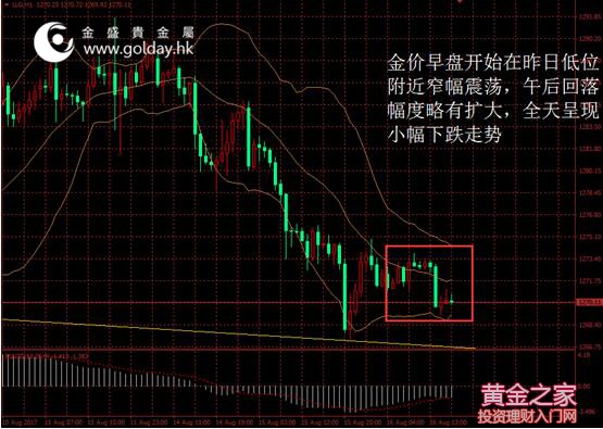 今日現(xiàn)貨黃金開盤1271.19美元/盎司,截至北京時間下午5點20分,最高價格為1273.84美元/盎司,最低價格為1269.15美元/盎司。日內(nèi)來看,金價早盤開始在昨日低位附近窄幅震蕩,午后回落幅度略有擴大,總體呈現(xiàn)低位震蕩走勢。美元指數(shù)基本持平,午后振幅擴大。消息面仍然保持平靜,技術面中性偏弱。 圖 1 金價日內(nèi)走勢 消息面上看,今天公布的數(shù)據(jù)顯示,歐元區(qū)二季度GDP環(huán)比修正值為0.6%,符合初值和預期,但同比增速從2.1%上修至2.2%,超出市場預期。總體來看,歐元區(qū)經(jīng)濟復蘇的情況仍在延續(xù)。歐央行方面,有知情消息人士表示,歐央行行長德拉吉將不會在杰克森霍爾會議上發(fā)出新的政策信息,減弱了外界關于歐洲央行即將開始規(guī)劃退出刺激政策的預期。其同時還表示,德拉吉希望等到秋天再展開政策討論,7月政策會議上已達成這樣的共識。9我們認為,9月歐央行會議仍有較高的可能將對未來放慢QE進行暗示,屆時歐元可能將有所走高,對金價有所提振。 市場層面看,日本股市收盤近持平,前一交易日的漲勢失去動能,因日圓走軟態(tài)勢放緩,日經(jīng)指數(shù)收跌0.1%至19729.28點。中國股市小幅收跌,追高意愿不足周期股持續(xù)調(diào)整拖累大盤,上證綜指收報3246.45點,跌4.81點或0.15%。香港股市收高近1%,投資者從強勁的企業(yè)季度獲利中獲得鼓舞,蓋過中國經(jīng)濟放緩跡象的影響,恒生指數(shù)收高0.9%報27409.07點。匯率方面,美元指數(shù)持于三周高點附近,此前美國強勁的零售銷售數(shù)據(jù)刺激其上行。國際能源價格方面,油價因美國原油庫存下降而上漲,但仍受全球供應過剩打壓,布倫特油價漲約0.87%。 技術面上看,金價早盤開始在昨日低位附近窄幅震蕩,午后回落幅度略有擴大,總體呈現(xiàn)低位震蕩走勢。短期來看金價走勢或仍可能繼續(xù)偏弱,1270美元附近是日內(nèi)爭奪的焦點,下方1260美元附近則是重要支撐,此外還可關注1240美元位置附近的支撐。中期來看,1220美元和1200美元整數(shù)關口仍是關鍵分水嶺,1300美元附近則是重要壓力位置。 此外,今晚8點30分將公布美國7月房地產(chǎn)開工,需要予以關注。 投資有風險,入市需謹慎。以上建議僅供參考,不作為唯一投資依據(jù)。