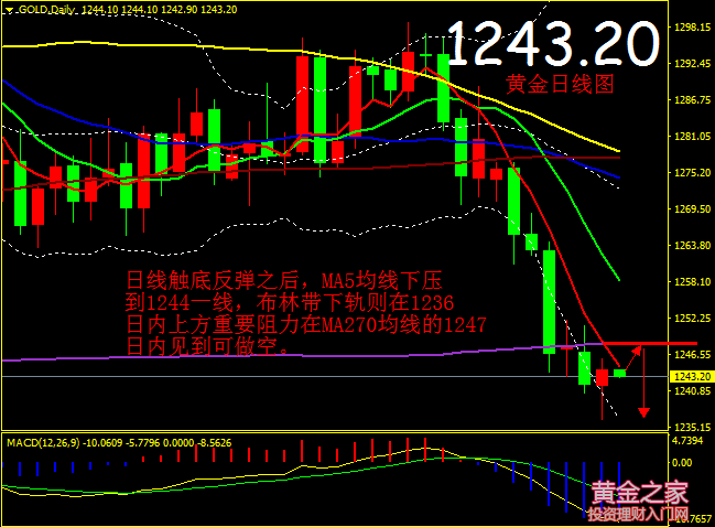 【行情回顧】 昨日黃金開盤在1241.8,白盤價格開始反彈,最高上漲到1245.9,之后價格開始走跌,在美盤階段最低下跌至1236.3,如果后按昨日策略在1245一線做進空單的朋友,再次獲利不少,午夜價格走出一波快速反彈,最終收盤在1244.2,日線成功的翻陽了。 【國際消息面】 周二(12月12日)美市盤中,由于美國公布的最新PPI數(shù)據(jù)表現(xiàn)亮眼,美元指數(shù)急劇攀升,一舉突破94大關(guān)刷新日高至94.20。在美聯(lián)儲開始為期兩天的政策會議之際,這一數(shù)據(jù)利好無疑令多頭受到提振。隨著美元回暖,貴金屬市場全線下挫,其中現(xiàn)貨黃金失守1240美元/盎司關(guān)口。針對美聯(lián)儲會議,華爾街的債券和外匯交易員正在關(guān)注美聯(lián)儲將如何將諸如減稅之類的立法舉措納入其政策措施中。有分析師指出,最近的核心消費者價格指數(shù)已經(jīng)有所改善,這導(dǎo)致一些人猜測,美聯(lián)儲可能會加快加息步伐,而美聯(lián)儲前瞻指引可能會喪失向市場發(fā)出明確信息的能力,或成為波動性驟增的催化劑之一。 【技術(shù)面分析】 日線方面: 日線上,昨日價格再次試探新的低點,不過隨后不敢就此放棄抵抗的多頭力量再次涌入大批買盤,讓黃金日內(nèi)扭跌為漲。目前日線技術(shù)面上,布林帶依舊是開口向下,K線沿著布林帶下軌運行,布林帶下軌不斷向下張口,MA5均線也不斷向下承壓,目前下壓至1244一線,隨著黃金價格越壓越低,每一次創(chuàng)下新低之后的反抽都比較劇烈,隨著昨晚的反抽收陽,MACD方面能量柱開始呈現(xiàn)縮量的跡象,這一點需要注意一下,今日市場重點都關(guān)注周四凌晨的美聯(lián)儲利率加息問題上,操作上依舊是高空思路,不過點位需要注意一下,切不可盲目進單。 4小時方面: 4小時上,隨著昨晚的一波探底回升,4小時形成一個啟明星的走勢,目前布林帶三軌呈現(xiàn)縮口的狀態(tài),MA5和MA10均線也差不多粘合在一起,從附圖指標MACD來看,快線向上勾頭,能量柱些許加強,白盤可能依舊是以小幅反彈為主,重點關(guān)注是否會破位布林帶中軌1246一線的阻力點。 小時線方面: 小時線上,昨晚小時間成功走出一波6連陰之后6連陽的V形反轉(zhuǎn)出來,將黃金從布林帶下軌的位置一路上漲至布林帶中軌之上,目前MA5上穿MA10形成金叉,K線也運行在MA30均線上方,布林帶方面三軌平行,上軌在1246一線形成阻力點,MA10均線在1241一線形成短線支撐點。 綜合分析,昨日黃金的一波觸底反彈加上近日市場靜待美聯(lián)儲加息事件,導(dǎo)致黃金短線進入到一個小幅震蕩的走勢當(dāng)中,不過整體來說黃金依舊處于弱勢,操作上依舊是高空為主,日內(nèi)見1246一線繼續(xù)做空單。 【黃金操作策略】 12.13黃金操作建議: 1、1245-1246做空,止損1248.8,目標看1241-1240.快速破位1240,下移止損1242繼續(xù)持有。 2、如行情有重大破位,在給新策略。 【今日重點關(guān)注的財經(jīng)數(shù)據(jù)與事件】2017年12月13日周三 1、21:30美國11月季調(diào)后CPI月率 2、23:30美國至12月8日當(dāng)周EIA原油庫存 3、次日03:00美聯(lián)儲FOMC公布利率決議及政策聲明 4、次日03:30美聯(lián)儲主席耶倫召開新聞發(fā)布會 |