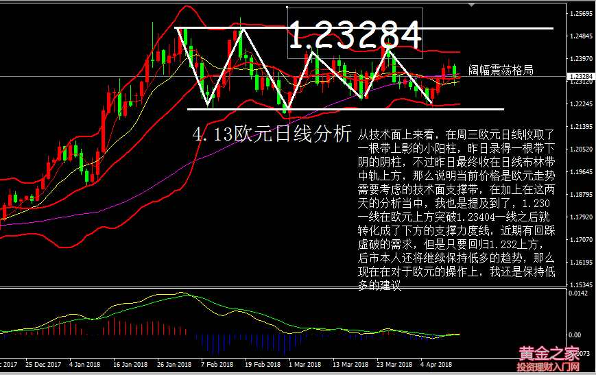 金銀同道:4月13,貿易戰陰影籠罩QE政策,地緣因素爭端不止 市場回顧: 美元指數周四上漲0.28%,報89.76,最高觸及89.97,進一步逼近90關口,主要受到此前公布的美聯儲3月會議紀要提振。由于市場避險情緒降溫,美元兌日元收盤上漲0.47%,報107.28。 歐元兌美元收跌0.33%,報1.2325。周四歐洲央行公布的3月貨幣政策會議紀要痛擊歐元多頭。紀要顯示,歐洲央行決策者擔憂貿易戰和歐元強勢。決策者表示,歐元近幾個月走強是不確定性的“重要來源”。部分決策者預計,這將會給通脹造成更加負面的影響。投資者猜測,美中貿易戰一觸即發是否會導致歐洲央行撤走超寬松貨幣政策的計劃落空。 行情解析: 昨日歐元受歐洲央行會議紀要影響,出現一波空單的打壓,下挫1.230關口之后隨機反彈,使得市場對于中美貿易戰下的歐元存在著過度的擔憂。不過從昨天的會議紀要來看,歐元當前雖然順勢著和平鴿的理論,但是歐洲央行的QE政策,現在已經有內部者對于歐洲央行QE的結束有著不錯的看法和建議,那么后期一些歐洲央行方面的發言,都值得我們去細想。 從技術面上來看,在周三歐元日線收取了一根帶上影的小陽柱,昨日錄得一根帶下陰的陰柱,不過昨日最終收在日線布林帶中軌上方,那么說明當前價格是歐元走勢需要考慮的技術面支撐帶,在加上在這兩天的分析當中,我也是提及到了,1.230一線在歐元上方突破1.23404一線之后就轉化成了下方的支撐力度線,近期有回踩虛破的需求,但是只要回歸1.232上方,后市本人還將繼續保持低多的趨勢,那么現在在對于歐元的操作上,我還是保持低多的建議。 操作建議: 歐元現價1.23284做多,止損昨日低點1.22943,上看1.23654-1.23878。 【今日重點關注的財經數據與事件】2018年4月13日 周五 ① 10:00 中國3月貿易帳 ② 10:50 中國3月以美元計算貿易帳 ③ 14:00 德國3月CPI月率終值 ④ 16:00 IEA公布月度原油市場報告 ⑤ 17:00 歐元區2月季調后貿易帳 ⑥ 22:00 美國4月密歇根大學消費者信心指數初值 ⑦ 次日01:00 美國至4月13日當周石油鉆井總數 文/金銀同道 |
