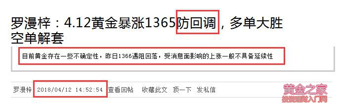 在投機(jī)市場里面,最大的敵人正是你自己。真正贏錢的人不是智商高而是那些能夠控制住自己情緒的人,能夠戰(zhàn)勝自己的貪婪和恐懼的人。有了好的交易系統(tǒng)和操作理念后,這還只是停留在思想上,最重要的是執(zhí)行的時(shí)候不能夠變形。不要因?yàn)榍榫w變動(dòng)來左右自己的交易決策,要有執(zhí)行力。 本周前三天黃金一直處于多頭走勢,周三受消息面影響,避險(xiǎn)升溫提振黃金價(jià)格創(chuàng)下本周新高,打破了連續(xù)兩個(gè)月的震蕩趨勢最高上探1364美元的位置。但凌晨2:00美聯(lián)儲(chǔ)官員發(fā)表講話后黃金又爆跌18美元;黃金昨日單邊下跌的態(tài)勢已完全脫離了預(yù)期。我預(yù)計(jì)行情在周三的暴漲后會(huì)回調(diào)指標(biāo)修復(fù),只是昨天回調(diào)的力度較強(qiáng),我也在昨天的文中中已經(jīng)提示日內(nèi)謹(jǐn)防回落。詳情可閱《羅漫梓:4.12黃金暴漲1365防回調(diào),多單大勝空單解套》 近期黃金試探1366阻力已是第四次,但終以失敗告終。昨日回調(diào)的力度超出我的預(yù)期,給出的1350多單在盤整中小損手動(dòng)出局做了空,回落1343獲利出局后反手多單,進(jìn)場點(diǎn)位較高的朋友多單待行情回落1340下方損掉。損單就是告訴我們方向錯(cuò)了,指導(dǎo)思路出現(xiàn)錯(cuò)誤就應(yīng)該即時(shí)止損不能一錯(cuò)再錯(cuò)。美盤原油回落試探66一線支撐漫梓通知多單進(jìn)場,反彈66.7一線獲利出局休息,整體小幅盈利;不喜歡頻繁操作,有的只是穩(wěn)健的思路和方法,如果你剛好也是這樣,那我們或許能成為朋友。 黃金,經(jīng)過昨日的大幅度下跌,日線轉(zhuǎn)大陰回落,近期行情又存在了很多不確定性,當(dāng)前已經(jīng)從前面的震蕩上升轉(zhuǎn)變?yōu)楦呶徽鹗帲鹗幏绞揭呀?jīng)截然不同,F(xiàn)在確實(shí)不明確行情具體動(dòng)向,但我仍看好近期還將維持在1320支撐上方運(yùn)行,上周非農(nóng)已經(jīng)二次測試1320一線支撐,那么繼續(xù)回測的概率不大。今日下方上行趨勢支撐位在1327附近,守住該位漫梓看漲,如果持續(xù)弱勢下跌,后面行情將無法預(yù)測,今天不建議追空操作,存在一定的風(fēng)險(xiǎn)性。近期大幅上漲下跌的行情,一般不具備延續(xù)性。具體操作還要進(jìn)一步觀察亞歐盤的強(qiáng)弱力度。 黃金日內(nèi)操作策略:穩(wěn)健回調(diào)1330一線多單,止損4個(gè)點(diǎn),目標(biāo)點(diǎn)位看1340-1342! 4月11日(周三)黃金兩多兩空 4月10日(周二)黃金多獲原油空損 4月9日(周一)黃金多獲原油多獲 撰稿人/羅漫梓 撰稿時(shí)間/2018年4月13日 |