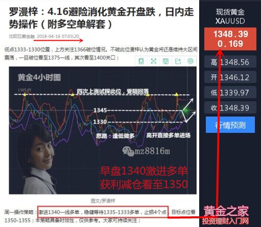 對于上周黃金原油暴漲暴跌的行情,肯定有很多投資朋友都手足無措,沒及時止損、砍單導致大量虧損。然后懷疑自己是不是適合這個市場,懷疑市場是不是總跟自己作對。其實羅漫梓想告訴大家的是,手指臟了,大可不必把手砍掉,帽子小了,大可不必把頭削掉,那么你的單子做錯了為什么要把自己一票否決?魚攪不渾大海,霧壓不倒高山,自己打敗自己才最可悲,自己戰勝自己才最可貴。這個市場行情像風向一樣你無法左右,但你可以調整風帆,調整心情,去改變看待行情的思維。 盡管周末美英法實施了對敘利亞的軍事打擊,但羅漫梓認為這只是一次性行動,該重大地緣政治風險事件并未引發市場恐慌,在周末時間已被市場有所消化,今天開盤,黃金、美油、布油雙雙震蕩走低,目前跌幅已分別擴大至0.73%和1.16%。 黃金早間1346一線開盤后直接走跌,漫梓早盤策略回落1340多單反彈1348已收獲一波。目前市場對美國3月份零售銷售數據的預期也比較樂觀,這可能給美元提供支撐,進而限制金銀油和非美貨幣的漲幅,今天的操作我們還是維持低多的思路不變,黃金下方支撐看上周五低點1333-1330位置,上方關注1366破位情況。不破此位漫梓認為黃金將還是維持1320-1366大區間震蕩,一旦破位看至1375一線,其次看至1400關口; 不過,中東局勢有可能進一步發酵。美國副總統彭斯周末表示,美國政府已做好再次軍事打擊敘利亞的準備。華盛頓也將于周一宣布對俄羅斯的新一輪制裁措施。如果出現了第二輪導彈襲擊,或令市場地緣政治風險急劇升溫,避險寶貝黃金或再迎一波暴漲,如果美國和歐盟重新實施對伊朗的制裁,且西方國家擴大敘利亞內戰的范圍,那么布倫特原油價格可能飆升至80美元/桶,不排除油價也有大幅上漲的風險。 黃金歐盤操作策略:歐盤1342跟進多單的朋友,目標點位看至1350一線,目前空倉的朋友可稍作等待,行情回落1340-42還是多單策略,嚴格止損4個點,目標點位同上;(本策略具備時效性,僅供參考。大家可持續關注;) 原油歐盤操作策略:66.3一線就可多單進場,止損放在65.8位置,目標點位看67一線(本策略具備時效性,僅供參考。大家可持續關注;) 羅漫梓寄語:做投資都是想賺錢的,這個市場不是賺不到錢,而是你自己和你遇到的人心與人性怎么抉擇,作為一個分析師,應該具備自己則責任感和使命,我希望市場里每一位分析師都應該能保持自己的底線,不刷單,不拿虧損,投資者每一分錢都來之不易,應該秉持專業和職業為投資者服務。如果你選擇了我,相信了我,我沒有理由讓你失望。 撰稿者:羅漫梓 撰稿時間:2018年4月16日 |