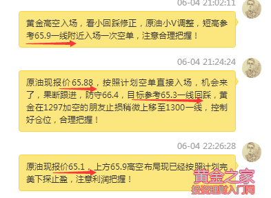 美盤小結:原油美盤時段布局的高位65.9空單在既定的時段如期下探,現已經測試到了65關口已近10個點的利潤到位,跟上就能盈利,就是這么簡單,二次沖高在測試上行幅度的同時也預示了下一次入場的時機,交易就是這樣,看的清行情,就能很好的把握盈利,油價震蕩偏弱,在測試65關口之后也免不了會出現反彈修正,小級別關注65.4-5一線,可看第三次下行修復,黃金在沖高之后也伴隨著一波小回落,不過低點只給到了1294,按照既定的1293并未測試到,可繼續關注,實時入場歡迎與本人交流互動探討! ![]() ![]() |