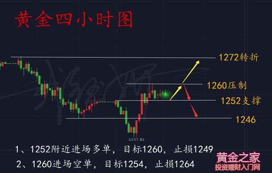 黃金連陰下跌,空頭排列之后行情出現(xiàn)雙陽反彈局面,而且從信號上來看,日線看漲吞沒,四小時早晨之星信號,所以行情近兩個交易日應(yīng)該到了非常關(guān)鍵的盤口。如果持續(xù)連陽,突破1272-1276區(qū)域,那么基本就可以確立多頭反轉(zhuǎn)成立,而如果承壓再度回落下破1250-1246區(qū)域,那么要防止短線反彈不成氣候,還去下探尋找底部。日內(nèi)行情我們暫時關(guān)注上方1260-1262壓力,下方1253-1252的短線支撐,其次就是1248-1247的重點支撐。