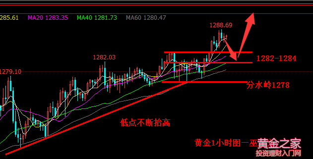 黃金,沿著5日均線持續的震蕩向上,多頭結構保持的非常完好。打開1小時圖可以看到,每一波的上漲中間都伴隨有回撤,多頭看似不強卻很強,針對目前的高位震蕩上行情況,操作上主要注意以下幾個方面。 1、以做多為主,在參與多單的同時,首次觸及關鍵的壓力位短線可以適當的參與空單; 2、震蕩式上漲,盡量不要追單,以回撤買進為主,或者采用輕倉分批進場的方式,以免踏空,短線獲得一定的利潤之后就可以了結。 今日,黃金亞盤回撤1278后上漲,午間開始上漲,突破周一高點1284,歐盤多頭一如既往,最高至1288.74。亞盤上漲,歐盤續漲并破高,美盤回撤后繼續順勢跟進多單,下方的分水嶺早間低點1278,只要金價守住此位置,均看震蕩上漲。因行情是震蕩上漲,并不是強勢上漲,延續性可能較差,回撤的力度可能較大,盤中重點關注1282-1284區域支撐。 1月2日黃金美盤操作思路: 關注1282-1284區域支撐去跟多,看1288-1290區域 壓力位:1282-1284、1278、1267 支撐位:1290、1300、1309 本文由巫宏義分析師獨家策劃,轉載請注明出處。以上內容供參考。投資有風險,入市需謹慎。套單鎖單操作不理想可與本人溝通交流。 |