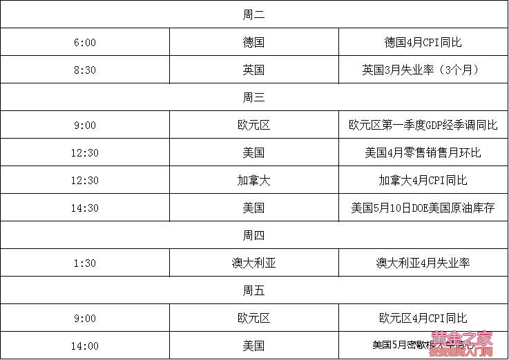 AUDUSD 上周中美貿易談判牽動著澳元的走勢,澳元經歷了跌宕起伏的一周。美國當地時間上周五,第十一輪中美經貿高級別磋商在華盛頓結束。中方表示雙方進行了比較好的溝通和合作,談判并沒有破裂,中美雙方意見分歧是談判中正常的小曲折。中方強調雙方應尊重彼此核心利益和重大關切,只有這樣才能推動貿易談判進程,構建良好的中美關系。中美貿易談判仍將繼續進行,預計下一次在北京會面。此外,在上周二澳洲央行的利率決議中,澳洲央行頂住了市場的壓力維持利率不變,澳元得到了短暫的提振。本周一系列數據將繼續影響澳元的走勢,其中值得關注的是周二澳大利亞當周消費者信心指數、4月商業經濟指數以及商業信心指數;周四的勞動力市場數據等。上周五,澳洲央行已表態如果失業率沒有能保持良好水平或進一步下降,將考慮調低利率,此番言論為了下次降息的舉措做了鋪墊。澳洲央行自2016年以來維持利率在1.5%水平不變,若真如新西蘭一樣采取降息措施必定是迫于形勢,為了緩解本國的經濟下行壓力。從技術層面分析,目前澳元正在脫離下降的楔形形態,且已跌入了0.700整數位下方,若進一步跌破0.6960,則可能出現進一步的疲軟。上方阻力位為0.7050。 USDCAD 上周加元總體走勢受壓于美元,不過在上周五的歐盤尾盤時段公布的美國通脹數據后,加元突然反彈余百點,最高達1.3379。根據公布的通脹數據顯示,美國4月CPI月環比錄得0.3%,低于前值和預計值0.4%;美國4月CPI同比錄得2.0%高于前值,但低于市場預期的2.1%。美國4月核心CPI月環比錄得0.1%與前值持平,但低于市場預計值0.2%。在同一時間公布的加拿大勞動力市場數據,加拿大4月失業率錄得5.7%好于前值和市場預期的5.8%,就業人數、參與比率以及薪資方面均有增加,可以看出加拿大就業市場增長強勁。該系列數據公布后因美國CPI數據不及預期美元疲軟,而加拿大方面數據利好加元,加元短線上漲50點。美國通脹數據公布后,美聯儲永久票委、紐約聯儲主席威廉姆斯發表講話,并釋放鷹派言論,表示將密切關注通脹進一步走軟的跡象,如果經濟前景發生變化,美聯儲將重新考慮利率路徑。基本預計是2019年加息一次,但加息預期是基于通脹的表現。從技術層面分析,目前加元在1.3500附近筑頂,61.8%回撤位1.3435為其關鍵水平位置,若能站穩此水平則有望開啟新一輪漲勢,向上測試1.3520一線,下方支撐位為1.3388。 USDJPY 上周緊張情緒彌漫著整個金融市場,日元受避險需求提振一度上漲至3個月的高點109.46,是表現最好的貨幣之一。自從美國總統特朗普對中國輸美商品增加關稅的消息發出后,貿易緊張局勢迅速升級,讓原以為能順利達成貿易談判的投資者措手不及,投資者進而轉向投資避險貨幣日元。雖然美國與中國的貿易談判仍將繼續,由于美國政府并未做出任何收回加征關稅的舉措,新的加征關稅的措施已于周五美國當地時間凌晨開始生效,受影響的中國商品達五萬多種。地緣政治緊跟貿易戰,朝鮮半島的緊張局勢不容緩和,美國和伊朗的緊張關系再次升級。伊朗總統上周表示,呼吁各國遵守2015年伊核協議的承諾,保護其本國的石油行業和銀行業免受美國的打擊。美國方面不斷以軍事行動威脅伊朗放棄核計劃。從技術層面分析,昨日該貨幣對跌破110.00整數關口后繼續下行,連續多個交易日下跌,可以看出短期內已失去上行的動能,預計該匯價將迎來更達的下行空間。上方阻力位為110.70,下方支撐位為108.50。 本周重要數據: