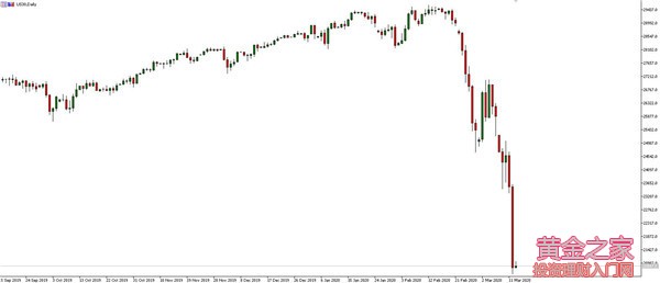 救市失敗,全球金融市場大恐慌 事件回顧:紐約聯(lián)儲下場救市,特朗普“預(yù)告”使用緊急權(quán)力,金融市場仍陷大恐慌 行情影響:恐慌指數(shù)VIX收漲40%,報75.47點,創(chuàng)2008年金融危機以來新高;CNN恐懼與貪婪指數(shù)指數(shù)跌至2,刷新歷史新低,市場極度恐慌。道指創(chuàng)1987年10月以來最大單日跌幅 事件分析: (1) 為挽救崩塌的牛市,美聯(lián)儲提高了下月向市場投放的流動性規(guī)模,承諾總共將提供超5萬億美元流動性。紐約聯(lián)儲昨日公佈規(guī)模5000億美元的3月期回購操作,並將在週五進行1萬億美元的回購操作,本周將共計進行1.5萬億美元的新回購操作 (2) 美國總統(tǒng)特朗普:在接下來30天內(nèi)暫停所有來自歐洲(除英國)的旅行;額外提供2000億美元的流動性;如有需要,可能會動用緊急權(quán)力,股市將會有非常大的反彈 (3) 美國三大股指已紛紛較前期高點下跌超20%。歷史數(shù)據(jù)顯示,美股跌入熊市後,美國經(jīng)濟衰退可能性超80%