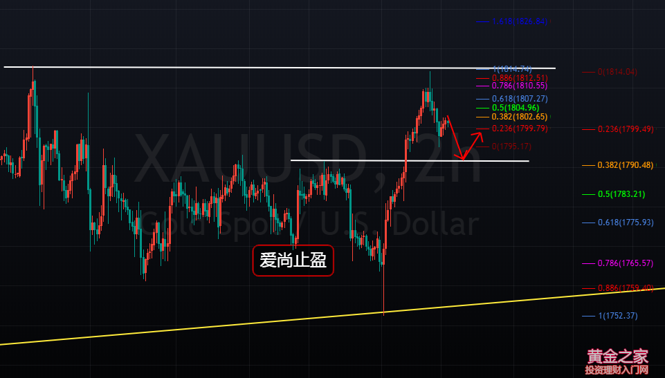 黃金,在上周走探底回升,最低觸及1752一線后一路上行,特別在突破1793-94壓力位后,金價一路逼空上升,周五最高觸及1814附近后受到日線級別壓力展開回落,在周五的分析中,本人明確的指出,黃金看多,但是不追多,上方強阻力在1815附近,首次觸及此壓力位附近可以做空看回落,周五,本人在實盤給出1814掛空的建議,抓住了周五反抽的最高點,晚間金價一路下行,最低觸及1795.6后開始震蕩整理收盤,我們的1814的空單,帶的1795止盈,空單離止盈位僅僅只有1美金之差。在周五沖高回落后,日線收取一根上影線極長的倒錘頭形態,這種形態收線后,日內黃金,將有望繼續走回撤,等回撤修正完成后再繼續做看反抽。 日內黃金,上方短期阻力關注周五回撤反抽的382阻力1802.5,此位也是周五凌晨走續跌的位置,如果是按弱勢回撤,1802.5就是日內博續跌的做空位,激進的可以在這里小空,如果保守的話,就等反抽1806-07空,此位是周五凌晨反抽的高點及618壓力位,觸及此位可以做空看回落,以周五美盤反抽的高點1810上方作為止損位進行防守即可,下方支撐關注1791附近,此輪反抽回撤的382支撐及前期頂底頂底轉換位,首次觸及此位也可接多看反抽。 操作建議: 1806附近空,止損1811,目標看1796-91 1791附近多,止損1786,目標看1802-07 |