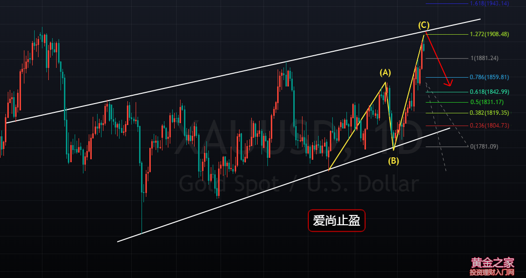 黃金,在春節(jié)前自1855開(kāi)始大幅回落,最低觸及1780附近后,受到日線及4小時(shí)趨勢(shì)線支撐開(kāi)始走連陽(yáng)走反彈,1780支撐的關(guān)鍵性,在春節(jié)前就已經(jīng)作出了預(yù)判,1780附近的多頭,我們也拿了個(gè)波段,但目標(biāo)僅僅只看到了1840,近60美金的利潤(rùn),現(xiàn)在看來(lái),格局還是小了。 在近期技術(shù)面與俄烏沖突的雙重背景下,早間黃金突破了1900整數(shù)關(guān)口,此位的突破,算是擊垮了近期逆勢(shì)空軍的心理防線,空頭不死,多頭不止,前面一路固執(zhí)做空的已經(jīng)死傷大片,等空頭死得差不多,多頭就將宣告結(jié)束了。 當(dāng)前黃金,上方阻力在日線趨勢(shì)線壓制1909附近,而1909,也是日線級(jí)別的諧波位。1722到1876,154美金的漲幅;1753到1909,也有156美金的漲幅,幅度上,基本符合AB=CD形態(tài)。(見(jiàn)下圖) 如果以1753為起點(diǎn),1753到1854,101美金的漲幅;1780-1909,129美金的漲幅,幅度剛好是前者的1.27倍,也完全符合AB=CD的變形形態(tài)。(見(jiàn)下圖) 日線以前期高點(diǎn)1876為開(kāi)跌口,1753及1780為起漲點(diǎn),1909附近,剛好符合蝴蝶形態(tài)D點(diǎn)的做空位。(見(jiàn)下圖) 以1680為起點(diǎn)的上升5浪已經(jīng)基本完成,1909若能成為此輪多頭的拐點(diǎn),后市將有望迎來(lái)空頭的春天。(見(jiàn)下圖) 技術(shù)面上,黃金已經(jīng)具備了中線做空的機(jī)會(huì),目前存在最大的爭(zhēng)議,就是俄烏沖突。這場(chǎng)沖突,完全就是美麗國(guó)在自編自導(dǎo),畢竟目前的局勢(shì)下,只有烏俄真正開(kāi)戰(zhàn)才符合美麗國(guó)的利益,才能將目前越來(lái)越抱團(tuán)并不聽(tīng)話的的歐盟綁在美國(guó)的戰(zhàn)船上,才能讓沒(méi)人要的美債找到接盤俠和冤大頭,進(jìn)而解決目前美國(guó)經(jīng)濟(jì)困窘債臺(tái)高筑和通脹嚴(yán)峻的事實(shí),進(jìn)而保證總統(tǒng)寶座能得到連任。但是,主演俄國(guó)不傻呀,他非常清楚導(dǎo)演想做啥,而打?yàn)鯂?guó),對(duì)自身百害而無(wú)一利,沒(méi)有利益的戰(zhàn)爭(zhēng),傻子才去碰。所以啊,我個(gè)人覺(jué)得,這場(chǎng)沖突,不會(huì)演變?yōu)閼?zhàn)爭(zhēng),鬧劇結(jié)束了,黃金也該跌了,畢竟在美聯(lián)儲(chǔ)加息的大環(huán)境下,未來(lái)黃金的空頭趨勢(shì)是不會(huì)改變的。 操作建議: 黃金1909附近空,止損1918,目標(biāo)看1854-1800破位持有 |