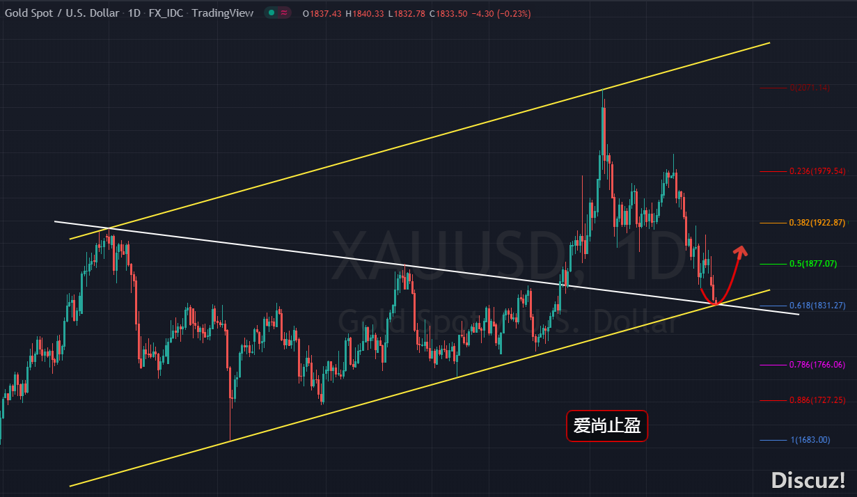 自2070下跌以來,日線結(jié)構(gòu)已經(jīng)走出了3浪下跌,當前黃金,面臨調(diào)整的尾聲,而昨晚1850的跌破,短線上完成了C浪的回落,早間黃金走續(xù)跌,金價跌至1832附近,1830區(qū)域,在前期的文章中多次提及,此位是我們1980及2000區(qū)域波段空單的目標位,也是后市黃金多空的關(guān)鍵的拐點位置,所以,早盤黃金,先依托1830區(qū)域支撐做多看反抽。 當前,黃金下方支撐關(guān)注日線級別上升通道下軌支撐1832及1680-2070上升回撤的0.618支撐位1829,這兩個位置,是本周黃金的關(guān)鍵支撐位,黃金若能守住此位,短期金價有望止跌反抽,早盤黃金,依托日線級別通道下軌支撐1832先多看反抽,止損放在618支撐1829之下作為多頭的止損點進行防守即可,上方壓力關(guān)注1850,昨日的頂?shù)邹D(zhuǎn)換位,有效突破后,黃金將有望繼續(xù)上升,強壓力繼續(xù)昨日高點1865,有效突破后,回撤繼續(xù)找位置做多即可,波段目標看至1895-1934。 操作建議: 1833附近多,止損1825,目標看1850-65,波段目標看1895-1934 |