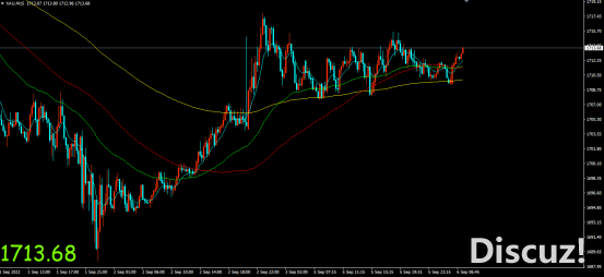 國際黃金周一(9月5日)維持窄幅整理,開盤價1712.15美元/盎司,最高價1715.60美元/盎司,最低價1707.55美元/盎司,收盤價1710.25美元/盎司。