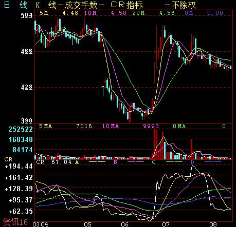 CR指標 CR指標又叫中間意愿指標,它和AR、BR指標又很多相似之處,但更有自己獨特的研判功能,是分析股市多空雙方力量對比、把握買賣股票時機的一種中長期技術分析工具。 一、CR指標的原理 CR指標同AR、BR指標有很多相似的地方,如計算公式和研判法則等,但它與AR、BR指標最大不同的地方在于理論的出發點有不同之處。CR指標的理論出發點是:中間價是股市最有代表性的價格。 為避免AR、BR指標的不足,在選擇計算的均衡價位時,CR指標采用的是上一計算周期的中間價。理論上,比中間價高的價位其能量為“強”,比中間價低的價位其能量為“弱”。CR指標以上一個計算周期(如N日)的中間價比較當前周期(如日)的最高價、最低價,計算出一段時期內股價的“強弱”,從而在分析一些股價的異常波動行情時,有其獨到的功能。 另外,CR指標不但能夠測量人氣的熱度、價格動量的潛能,而且能夠顯示出股價的壓力帶和支撐帶,為分析預測股價未來的變化趨勢,判斷買賣股票的時機提供重要的參考。 二、CR指標的計算方法 由于選用的計算周期不同,CR指標也包括日CR指標、周CR指標、月CR指標、年CR指標以及分鐘CR指標等很多種類型。經常被用于股市研判的是日CR指標和周CR指標。雖然它們計算時取值有所不同,但基本的計算方法一樣。 以日CR指標為例,其計算公式為: CR(N日)=P1?P2?100 式中,P1=∑(H-YM),表示N日以來多方力量的總和 P2=∑(YM-L),表示N日以來空方力量的總和 H表示今日的最高價,L表示今日的最低價 YM表示昨日(上一個交易日)的中間價 CR計算公式中的中間價其實也是一個指標,它是通過對昨日(YM)交易的最高價、最低價、開盤家和收盤價進行加權平均而得到的,其每個價格的權重可以人為地選定。目前比較常用地中間價計算方法有四種: 1、M=(2C+H+L)÷4 2、M=(C+H+L+O)÷4 3、M=(C+H+L)÷3 4、M=(H+L)÷2 式中,C為收盤價,H為最高價,L為最低價,O為開盤價 從四種中間價的計算方法來看,對四種價格的重視程度是不一樣的,三種都是選用了收盤價,可見,收盤價在技術分析中的重要性。 和其他技術指標一樣,在實戰中,投資者不需要進行CR指標的計算,主要是了解CR的計算方法,以便更加深入地掌握CR指標的實質,為運用指標打下基礎。 CR指標的一般研判標準主要集中在CR數值的取值范圍、CR指標曲線的形態以及CR指標曲線與股價曲線的配合等方面來考察。 一、CR指標的取值 1、從CR的計算公式我們可以看出,CR指標很容易出現負值,但按通行的辦法,在CR指標研判中,一旦CR數值出現負值,一律當成0對待。 2、和AR、BR指標一樣,CR值為100時也表示中間的意愿買賣呈平衡狀態。 3、當CR數值在75——125之間(有的設定為80——150)波動時,表明股價屬于盤整行情,投資者應以觀望為主。 4、在牛市行情中(或對于牛股),當CR數值大于300時,表明股價已經進入高價區,可能隨時回擋,應擇機拋出。 5、對于反彈行情而言,當CR數值大于200時,表明股價反彈意愿已經到位,可能隨時再次下跌,應及時離場。 6、在盤整行情中,當CR數值在40以下時,表明行情調整即將結束,股價可能隨時再次向上,投資者可及時買進。 7、在熊市行情末期,當CR數值在30以下時,表明股價已經嚴重超跌,可能隨時會反彈向上。投資者可逢低吸納。 8、CR指標對于高數值的研判的準確性要高于CR對低數值的研判。即提示股價進入高價位區的能力比提示低價位區強。 二、CR指標曲線的形態 CR指標的形態的研判主要是針對CR曲線在頂部和低部出現的不同形態而言的。 1、當CR曲線在高位形成M頭或三重頂等頂部反轉形態時,可能預示著行情由強勢轉為弱勢,股價即將大跌(特別是對于前期漲幅過大的股票),如果股價的K線也出現同樣形態則更可確認,其跌幅可以用M頭或三重頂形態理論來研判。 2、當CR曲線在低位出現W底或三重底等底部反轉形態時,可能預示著行情由弱勢轉為強勢,股價即將反彈向上,如果股價K線也出現同樣形態則更可確認,其漲幅可以用W底或三重底等形態來判斷。 3、相對而言,CR指標的高位M頭或三重頂的判斷的準確性要比其底部的W底或三重底要高。 三、CR曲線與股價曲線配合使用 在一定程度上,CR指標具有領先股價走勢的示警作用,尤其是在股價見頂或筑底方面,能能比股價曲線領先出現征兆。若股價曲線與CR指標曲線之間出現背離現象,則可能預示著股價走勢即將反轉。CR指標曲線與股價曲線的配合使用主要從以下幾方面進行的。 1、當CR指標曲線節節向上攀升,而股價曲線也同步上升,則意味著股價走勢是處于強勢上漲的階段,股價走勢將維持向上攀升的態勢,投資者可堅決持股待漲。 2、當CR指標曲線繼續下跌,而股價曲線也同步下跌,則意味著股價走勢是處于弱勢下跌的階段,弱勢格局難以改變,此時,投資者應以持幣觀望為主。 3、當CR指標曲線開始從高位掉頭向下回落,而股價曲線卻還在緩慢向上揚升,則意味著股價走勢可能出現“頂背離”現象,特別是股價剛剛經歷過了一段比較大漲幅的上升行情以后。當CR指標曲線在高位出現“頂背離現象”后,投資者應及時獲利了結。 4、當CR指標曲線從底部開始向上攀升,而股價曲線卻繼續下跌,則意味著股價走勢可能出現“底背離”現象,特別是股價前期經過了一輪時間比較長、跌幅比較大的下跌行情以后。當CR指標曲線在底部出現“底背離”現象以后,投資者可以少量分批建倉。 5、CR指標對“