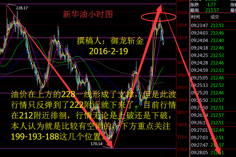做投資最重要的2點:一是要懂得分析市場的一個行情;二是要懂得控制風險,作為一個投資人要有著良好的態度及正確的投資觀念;積極的人在每一次憂患中都看到一個機會,而消極的人則在每個機會都看到某種憂患;面對劇烈波動的現貨現貨市場行情,我們要把握住每一個時機,把握住了機會也就等于把握住了明天! 【消息面】 原油價格暴跌,但頁巖油生產商并沒有完全退出市場。不過,低迷的原油價格確實使美國能源企業阻力劇增。德銀表示,如果原油價格在30美元左右,美國能源企業面臨相當大的債務阻力。當原油價格在35美元時,美國能源企業的債務對稅息折舊及攤銷前利潤的比率(debt/EBITDA)接近5.0。 即便是美國大部分的頁巖油和致密油,只有在布倫特原油低于30美元/桶時才會出現負現金流。美國頁巖油和致密油因其生產成本高于平均生產成本,在低原油價格的背景下成為了市場重視的焦點。據報道,很多投資人面臨的難題在于,大量原油生產商破產并不一定能縮減全球原油過剩的供應。企業需要現金償付他們的債務,因此現有的油井不太可能通過破產程序來停止生產。實際上,這些油井或將能出售給更好的買家,而這些買家能夠負擔得起油井繼續運營,甚至是增加產量。 【2.19原油早間技術分析】 新華油從四小時圖來看連收三根陰柱,說明空頭較為強勢。均線系統向下翹頭呈空頭排列。行情在中上軌運行,目前行情在10日均線210一線暫時得到支撐。5日均線和10日均線有形成金叉的跡象。下方附圖指標MACD多頭能是縮減。 從日線圖來看,昨日收陰。并且行情在60日均線受阻。但是5日均線和20日均線形成金叉向上翹頭。均線系統下行速度放緩,,附圖MACD綠色能量柱減小,KDJ有形成金叉之勢。 綜合來看這波回落暫時打破了極強的格局,這也是大漲中的回落需求,中線空頭仍然不變。 【2.19原油早間操作策略】 1、217做空,止損220,目標205-202; 2、下方202一線做多,止損198,目標210-212; 3、上破217,回調215做多,止損212,目標222-225; 4、下破202,反彈205做空,止損208,目標200-198. 5、以上原油行情分析及操作策略是以新華油為準,其它交易平臺在線指導請咨詢筆者御龍斬金。 【2.19銅早間技術分析】 新華銅技術分析:昨日新華銅一路震蕩上行,但是最終還是受阻與30000點,今日一直在29500-30000這個區間波動,近期可重點關注該區間的支撐和阻力位。從日線上來看,均線黏合在一起,在下方29600附近形成密集的支撐位,晚間重點關注該區間支撐。布林帶走平,或預示著油價的震蕩將會延續,K線處于布林帶中軌附近,布林帶中軌在29660一線也形成了支撐。上方在30650附近形成阻力位。MACD指標快慢線走平,KDJ指標金叉向上擴散。四小時圖來看,均線走平,MA40日均線在下方29540形成支撐。布林帶趨勢偏多頭,布林帶上軌在30040附近又阻力。下軌在29560附近有支撐,MACD指標快慢線走平,KDJ指標走平。綜合來看,銅將維持震蕩走勢,晚間重點關注30000和29500這兩個位置的破位情況,若不能有效破位,在這個區間高沽低揸即可! 【2.19銅早間操作策略】 1、29600-29700一線多,損300點,目標看30000-30200 2、30200附近做空,損300點,目標29800-29700,破位看29500 3、強勢破位30200,回踩30100多,損300點,目標30500-30700 4、意外下破29400,反彈29500空,損300點,目標29000 5、以上銅行情分析及操作策略是以新華銅為準,其它交易平臺在線指導請咨詢筆者御龍斬金。 【新華銅簡介】 因新華銅行情波動火爆,行情更好把控,應廣大投資者以及市場需求,今天開始,我們新華大宗技術部決定新華銅以及新華油的喊單,大家可以同步操作新華銅,把握2016新年大好的行情!新華銅以現在的價位來算,一手5噸的保證金7500左右,一手10噸的保證金9000左右,單邊萬六的手續費,鑒于新華油保證金比例的提高,資金量比較小的投資者可以嘗試新華銅。 新華銅保證金比3%,占用比例低,資金利用率高,每天波動300-500點,波動平穩,把握關鍵的支撐和壓力點位,獲利問題不大。要想成功操作現貨銅投資,投資者要學習的還很多,但是只有有好的開始,才會有好的未來,投資者如果按照本人的建議操作現貨銅投資,肯定能在現貨銅投資中擁有豐碩的收益。更多詳情聯系筆者! 在投資中我們要懂得取舍。而不是一味的堅持。有舍才有得。有時候要知道舍棄后,才能更好的得到。若在投資中遇到任何困惑,而無法解答時,可以找到我,定將為你解答。 【御龍斬金團隊服務宗旨】 ①優質服務:我們用最專業的知識,最優質的“一對一”為你服務。 ②喊單服務:我們有業內最精英的分析團隊全天實時在線行情分析,指導操作。 ③軟件服務:專業的技術實盤分析軟件報價與國際實時接軌。 ④資金服務:資金由銀行第三方存管,安全放心。 |